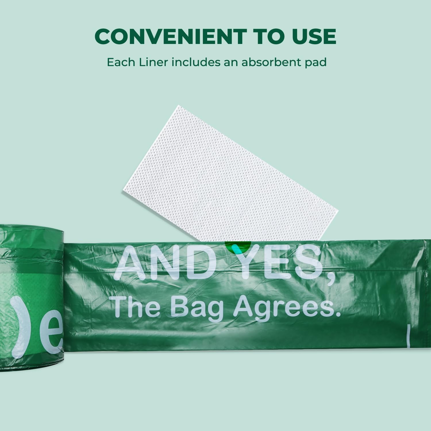- VALUE PACK &SMILE LINERS: Contains 60 bedside commode liners and 60 super absorbent pads, offering convenience and efficiency for easy clean up. Our disposable potty liners feature a pull-out design with built-in pads for quick use, preventing dust and contamination. Our commode liners disposable printed with "Smile You're Awesome! AND YES, The Bag Agrees" for a joyful touch