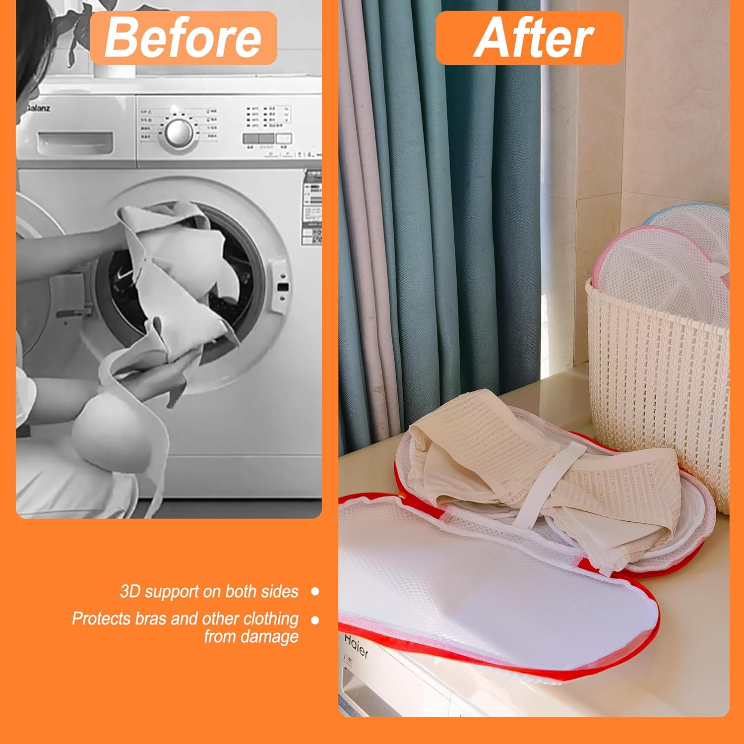 - Two Sizes Washing Bag - Two sizes are available, friendly for women who have different bra sizes. Especially the large size solves the problem of larger cup sizes didn't fit in the washing bags properly.