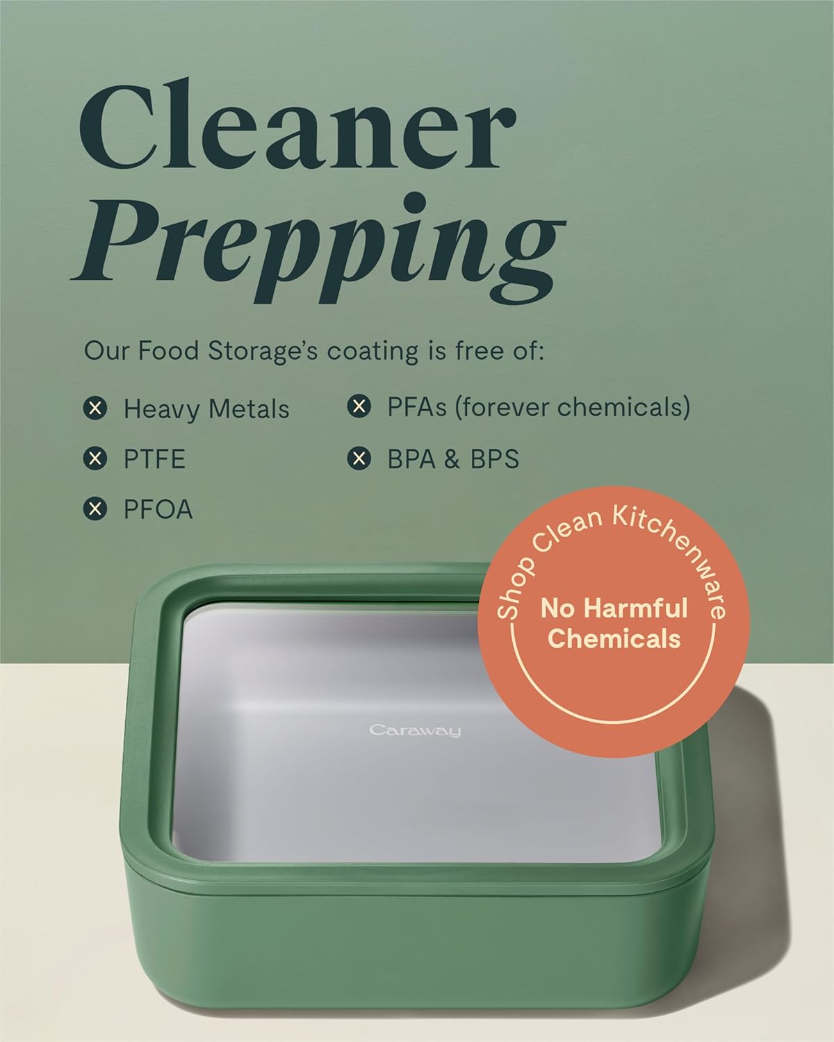 - BEAUTIFULLY DESIGNED: The cleanest, best-looking approach to storing your food. Our glass container features a clear glass lid for easy viewing Each container comes in modern colors that will match with your entire Caraway collection.