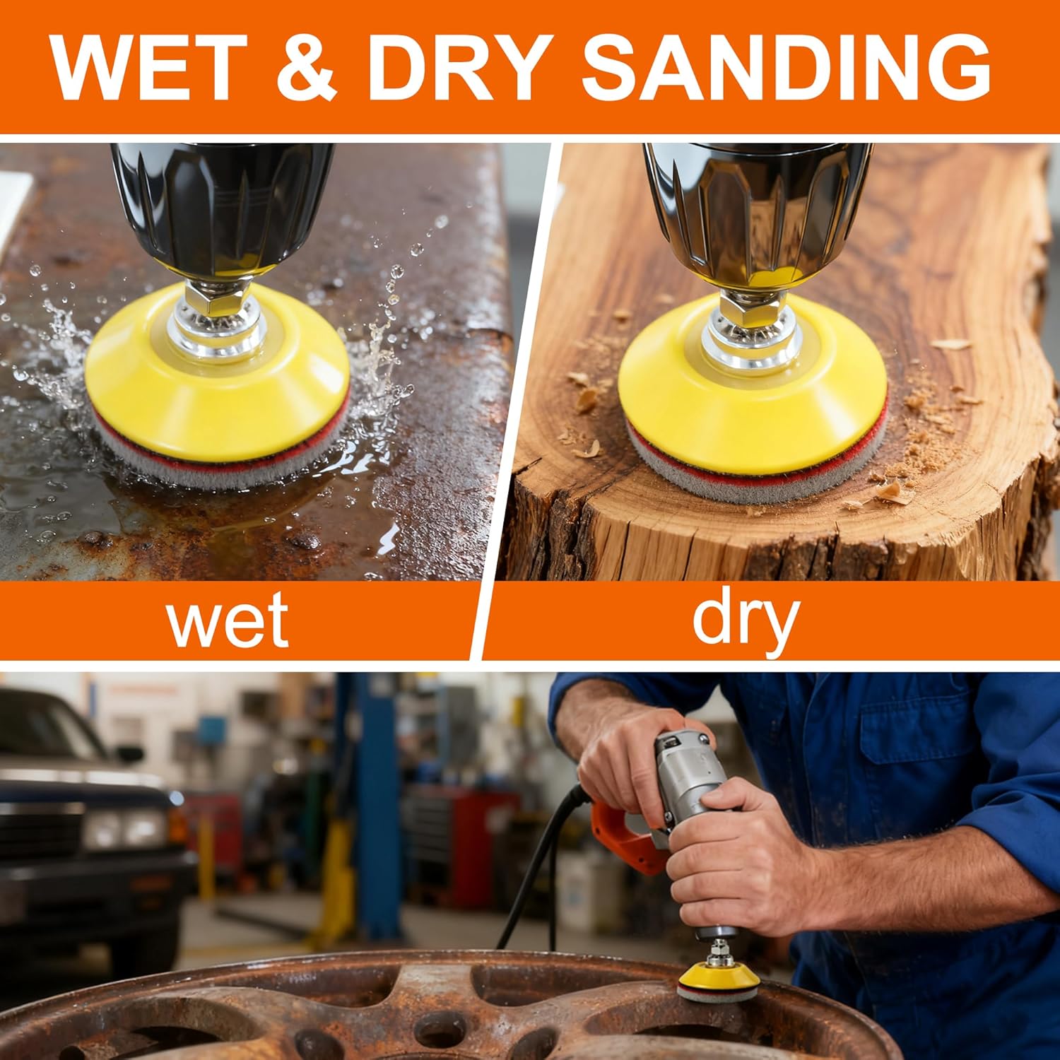 - 【Hook and Loop Design】 With hook and loop design, the stickiness is stable and not easy to fall off, which allows for quick and easy replacement of Sponge sandpaper and improves work efficiency,the tool backing pad with 1/4" shank works with air or electric drill, die grinder and other rotary tools for optimal polishing and sanding