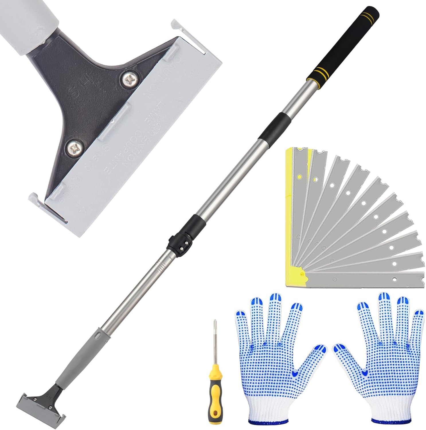 - 【Perfect Cleaning Tools】 Sharp blades can make your cleaning work more efficient,long handle scraper adjustable length suitable for all kinds of people, reinforced blade head is not easy to break, free ten blades for you to replace, at the same time send you a screwdriver!