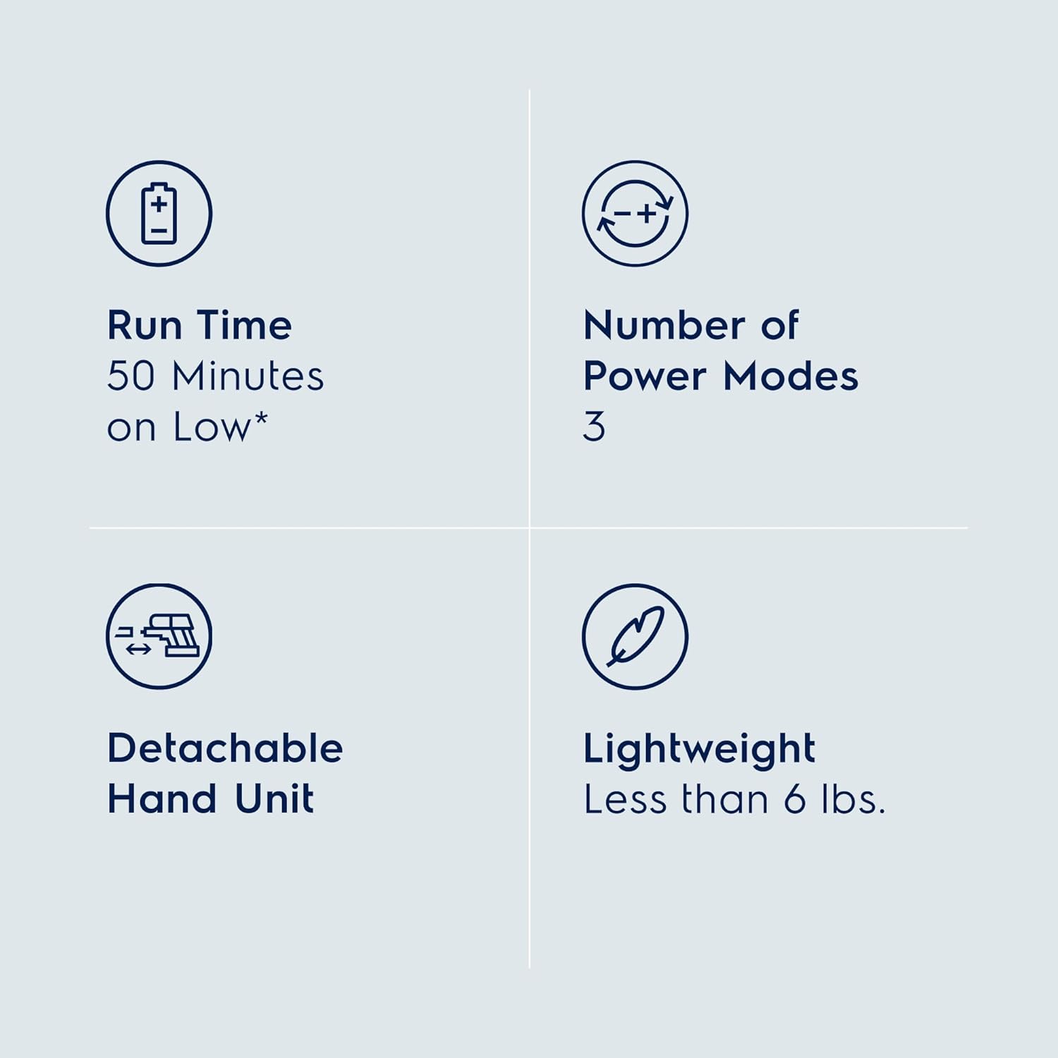 - Long-Lasting Cordless Power: Enjoy up to 50 minutes*** of run time; Set your vacuum to Auto Mode, which automatically adapts the vacuum's suction power depending on the floor type, making it ideal for multi-surface cleaning and maximizing run time