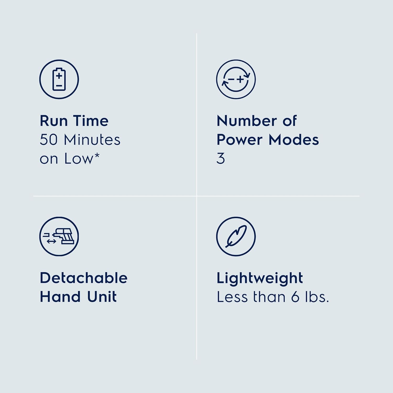 - Long-Lasting Cordless Power: Enjoy up to 50 minutes*** of run time; Set your vacuum to Auto Mode, which automatically adapts the vacuum's suction power depending on the floor type, making it ideal for multi-surface cleaning and maximizing run time
