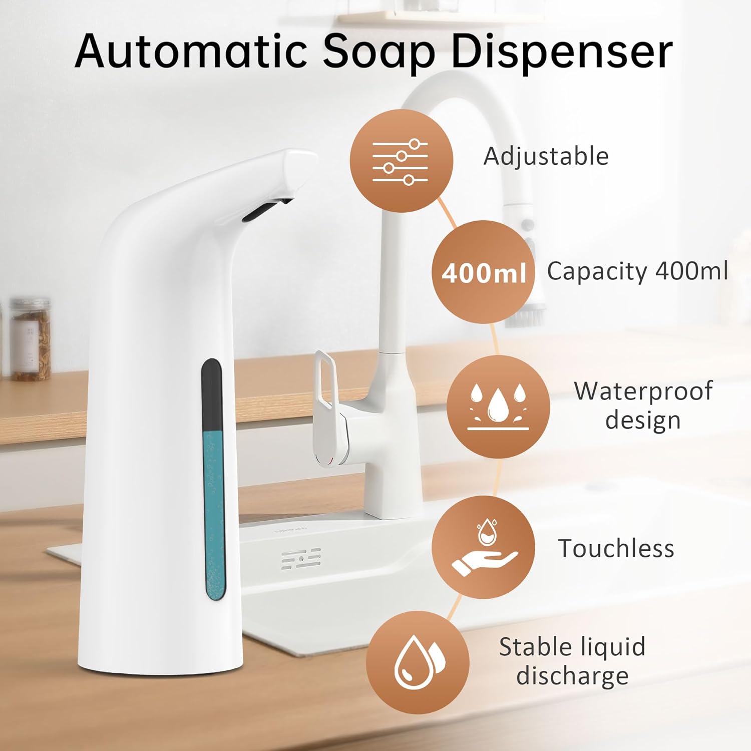 - 【Versatile Placement】This battery soap dispenser fits anywhere with its compact 400ml size. The IPX6 rating ensures reliable use in dorms, offices, or homes near water sources.