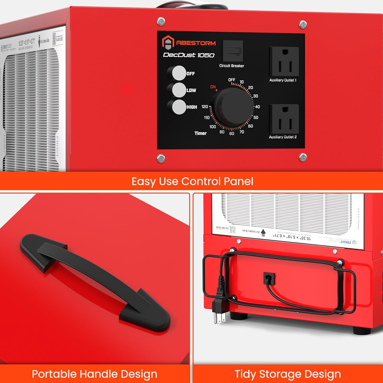 Abestorm Tabletop Dust Collector for Woodworking, Portable Double-sided Intake Air Filtration Systems, Movable Air Filter with Timer Function, Ideal for Garage Works Shop and Room Renovations