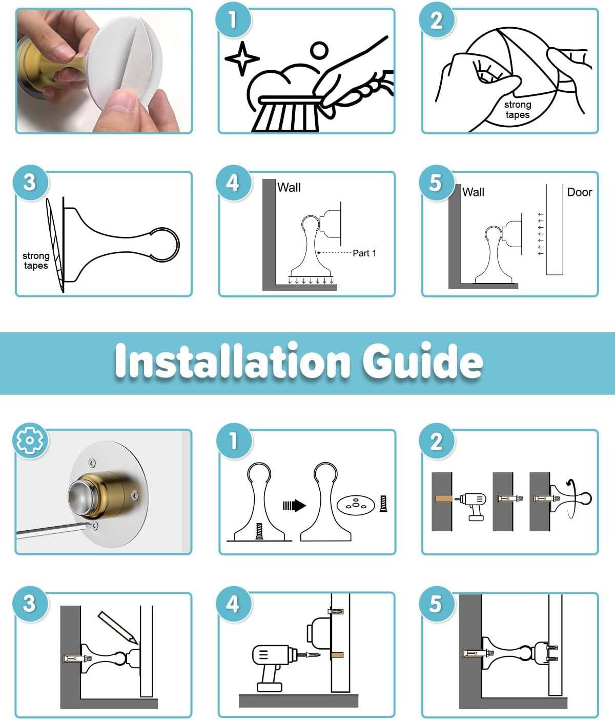 - [Simple Setup & Durable Construction] Effortlessly install your HELEMAN Magnetic Door Stopper, perfect for door stoppers for wall and bottom of door, with screw-in or no-drill strong adhesive options. Crafted from premium stainless steel, these magnet door stops ensure long-lasting durability, having passed rigorous tests (10,000 times) to guarantee reliability. Ideal for any setting, they represent a smart, robust solution for keeping doors securely in place