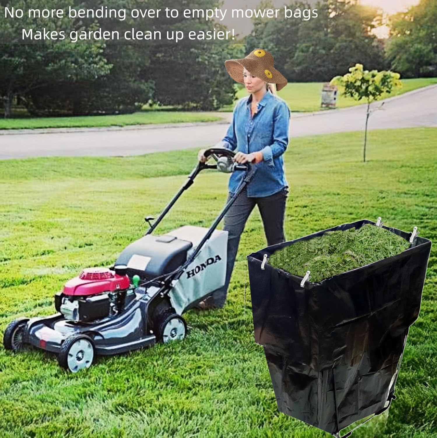 - 【large trash bag holder】:This garbage bag holder boasts an extra large storage capacity of 30-45 gallons, sized at 13’’ L x 26’’ W x 26.7’’ H. Comes with 25Pcs 40-45 gallon garbage bags and 4 small clips, the bags can be used directly over the garbage bag holders, the clips prevent the bags from blowing away or slipping off and keep the bags open for collecting yard waste and leafy grass clippings.