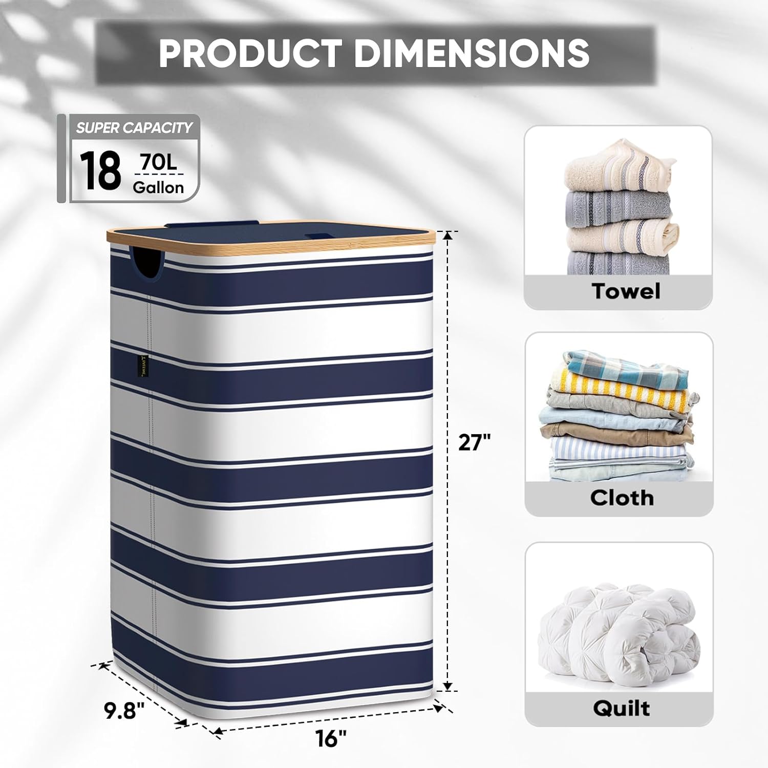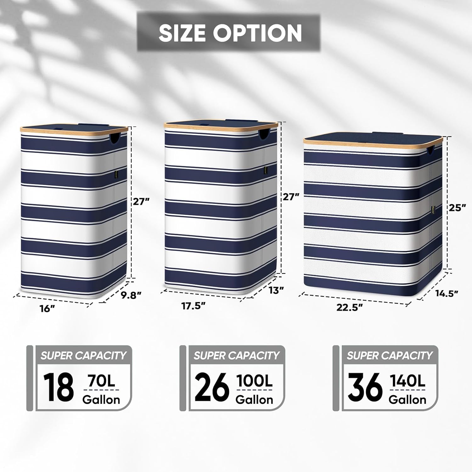 - [AMPLE CAPACITY AND EASY ACCESS] With 18 Gallon/26 Gallon/36 Gallon (70L/100 L/140 L) size option, the hampers for laundry provide ample capacity to hold all your dirty clothes, towels, bedding, and more. The lightweight lid is easy to open and close, providing quick and convenient access to your laundry.
