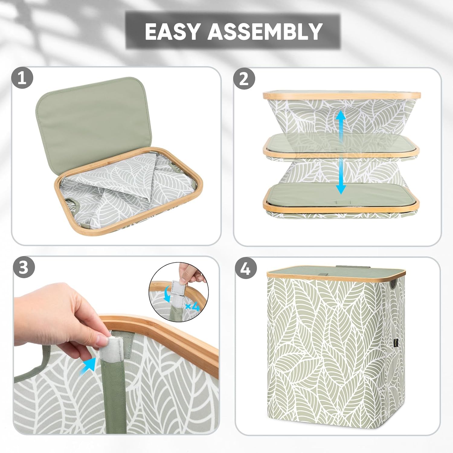 - [DURABLE AND ECO-FRIENDLY] We care about the environment, which is why our laundry hamper is made from sustainable bamboo rim. Bamboo is known for its exceptional strength and durability, ensuring this clothes hamper's handle will withstand the test of time. By choosing our eco-friendly laundry basket organizer, you're making a conscious decision to reduce your carbon footprint.