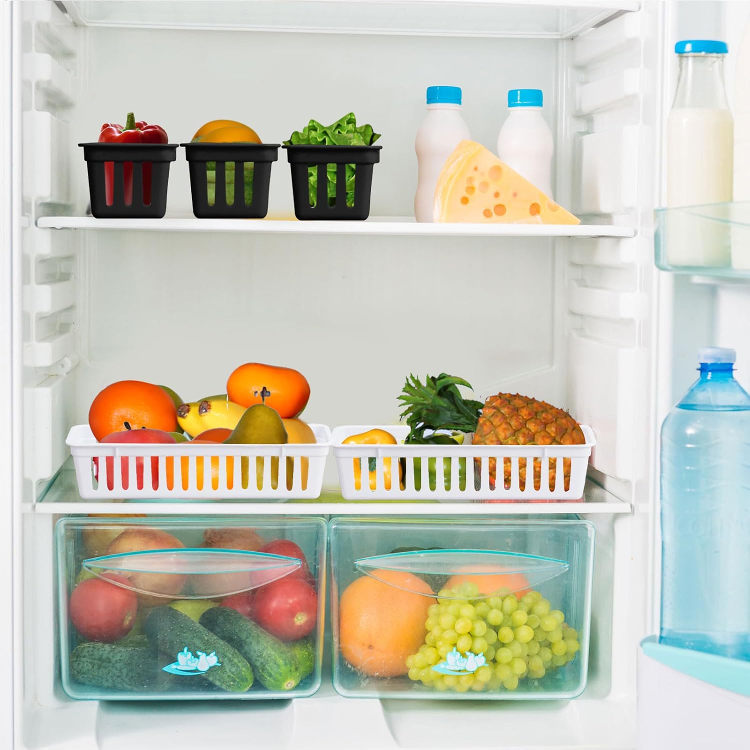 - Sleek Design Meets Nice Functionality: introducing our 12 pack of plastic storage baskets that meet most of your organizing needs; Crafted from durable PP plastic, they promise longevity combined with a stylish touch; The white and black color gives their sleek appearances and the dimension of about 10.25 x 3.25 x 2.5 inches/ 26 x 8 x 6 cm makes them the ideal organizer for those narrow spaces that are hard to utilize