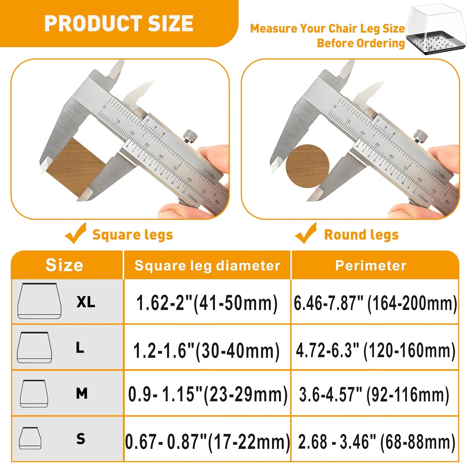- 【UNIVERSAL SHAPE AND SIZE】:Furniture Sliders has High elasticity, free to pull.No deformation and no discolorratio.Chair Leg Sliders are good for square furniture legs 0.67- 0.87"(17-22mm).with perimeter of 2.68 - 3.46" (68-88mm).