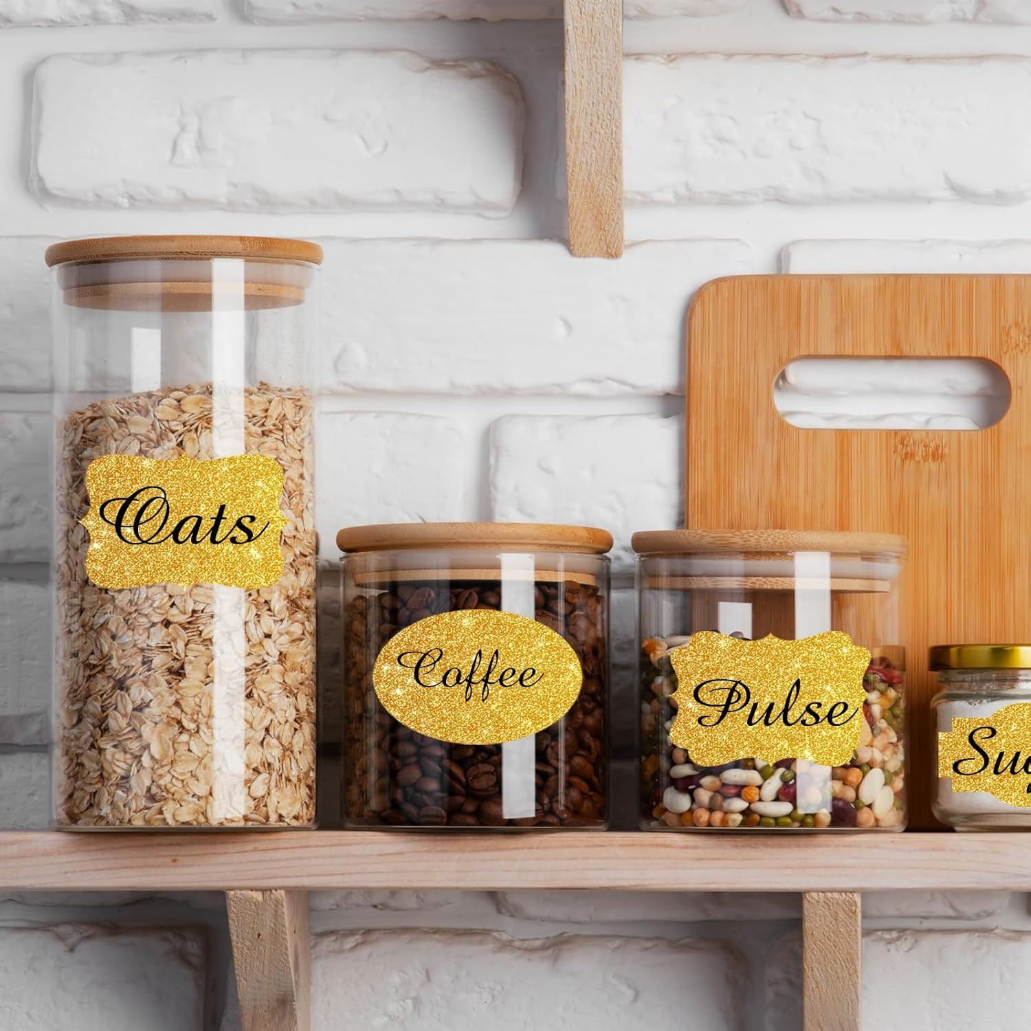 350 PCS Gift Tags Stickers Name Labels Stickers,2" x 1.2" Fancy Shape Stickers Self-Adhesive Handmade Bottle All-Purpose Jar Labels for Presents Cosmetic Decoration Jars Food Craft (Bright Gold)