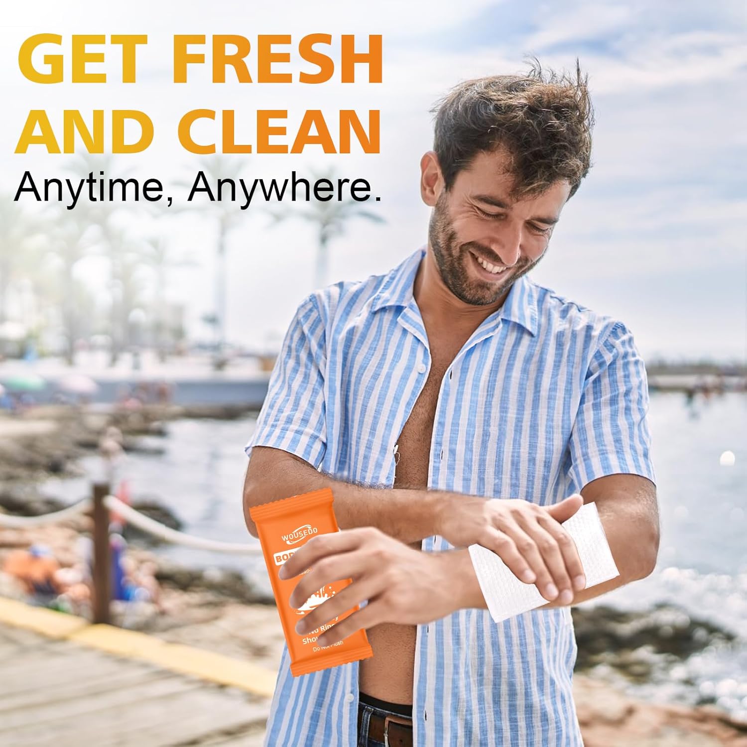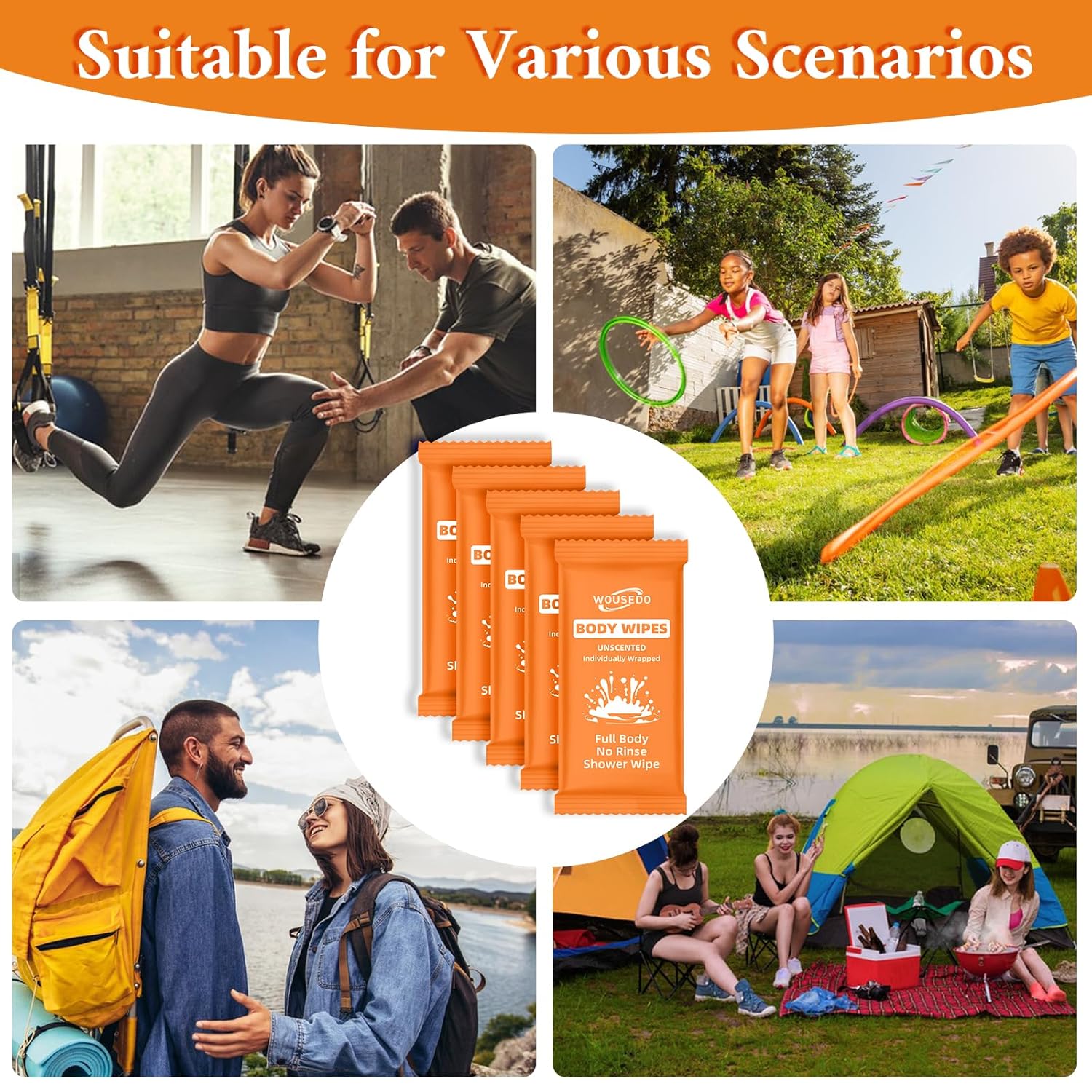 - Wide Applications: Our body wipes are suitable for all age groups and can be applied in a variety of scenarios. Whether you are traveling, camping, exercising, or just need a quick refreshment during the day, our shower wipes are always handy. They are a convenient and efficient cleaning solution that fits your active lifestyle, suitable for home, office, gym and other outdoor settings.