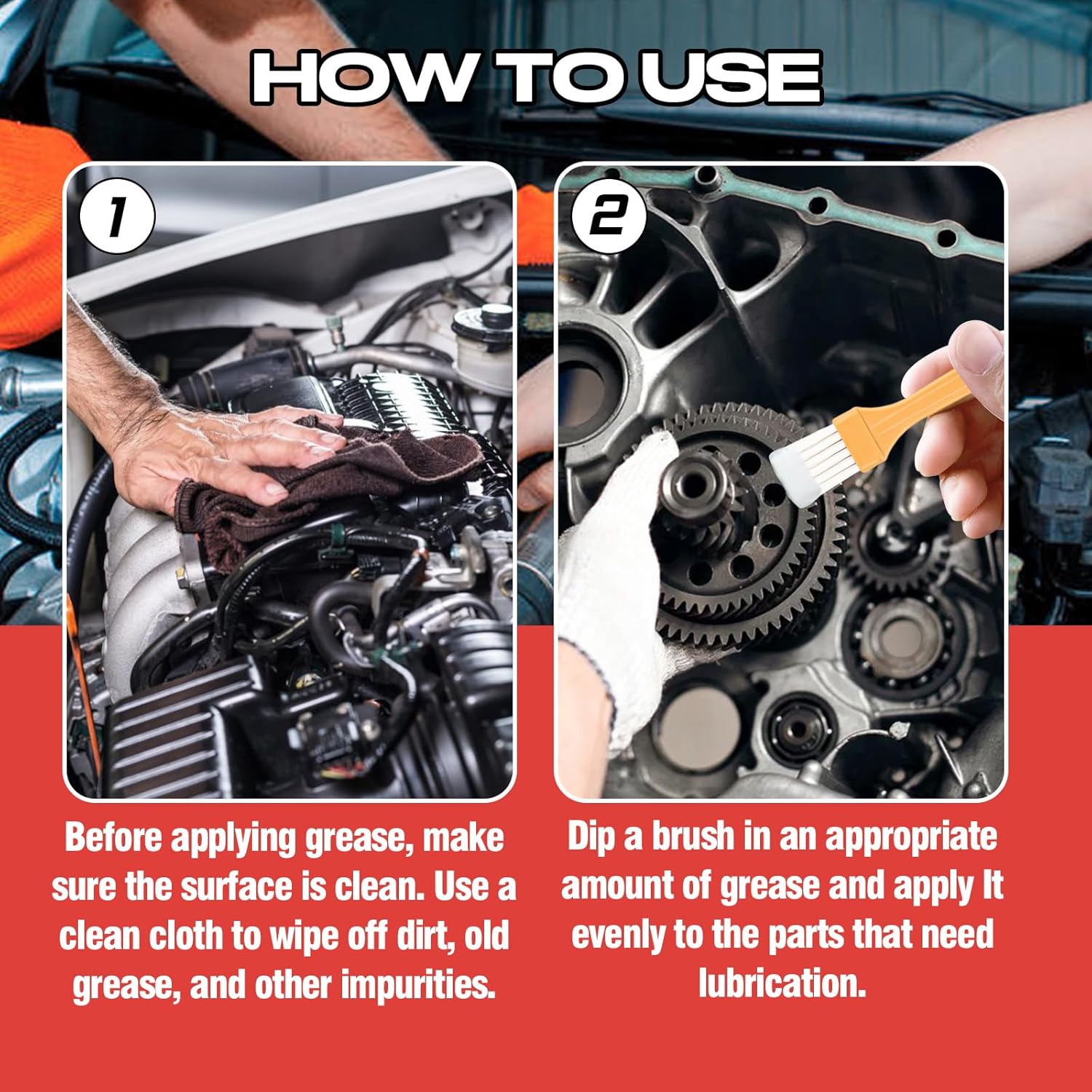 - Waterproof & Heat Resistant: Designed for outdoor and high-humidity conditions, this white lithium grease resists rain, moisture, and harsh environments. The bearing grease stays effective in temperatures from -12°C to 200°C, ensuring long-lasting lubrication and reliable performance.