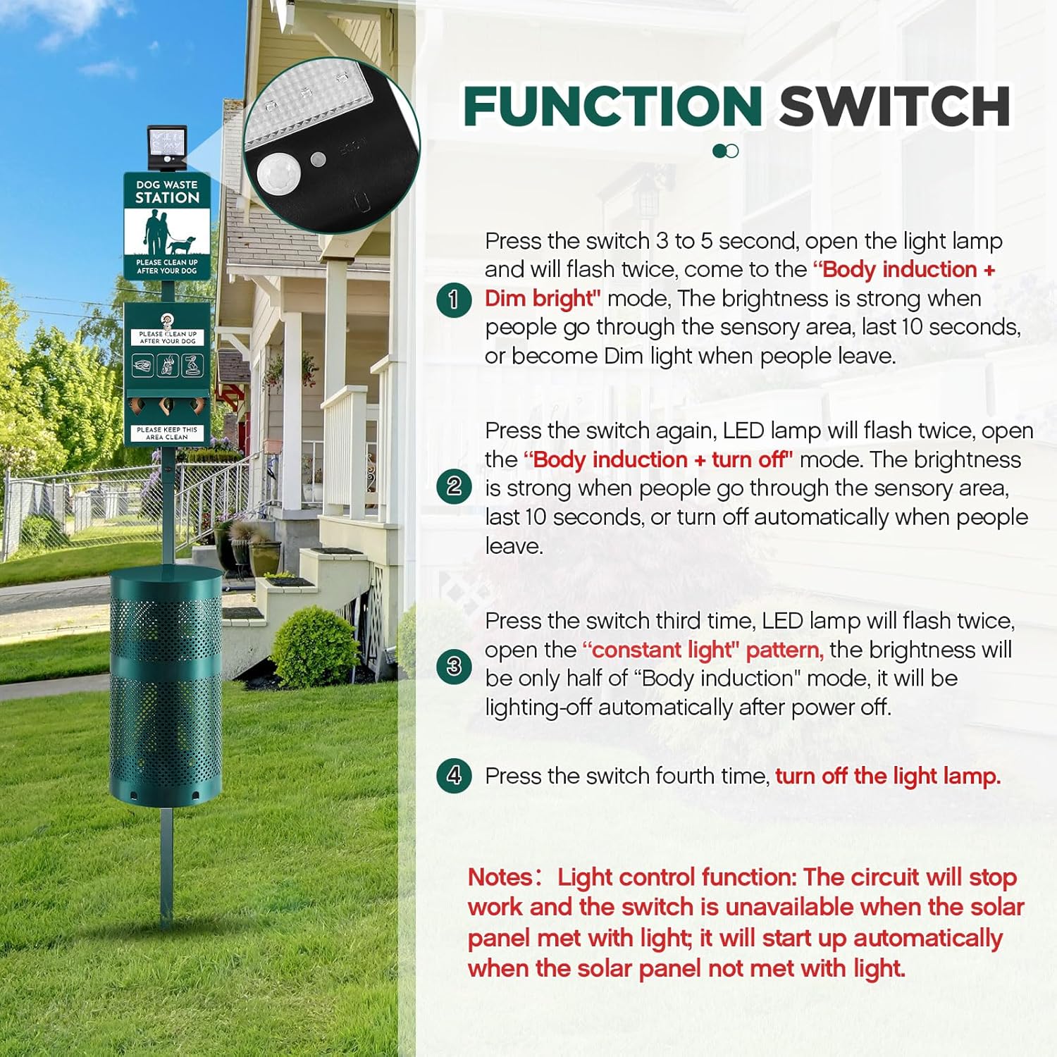 - Functional and Aesthetic: beyond its functionality, our solar pet waste station with reflective sign is designed to blend well with its surroundings; It won't be an eyesore in your park or backyard; Instead, it will subtly fit in, doing its job while maintaining the aesthetics of your outdoor space, cute appearance will attract everyone's attention