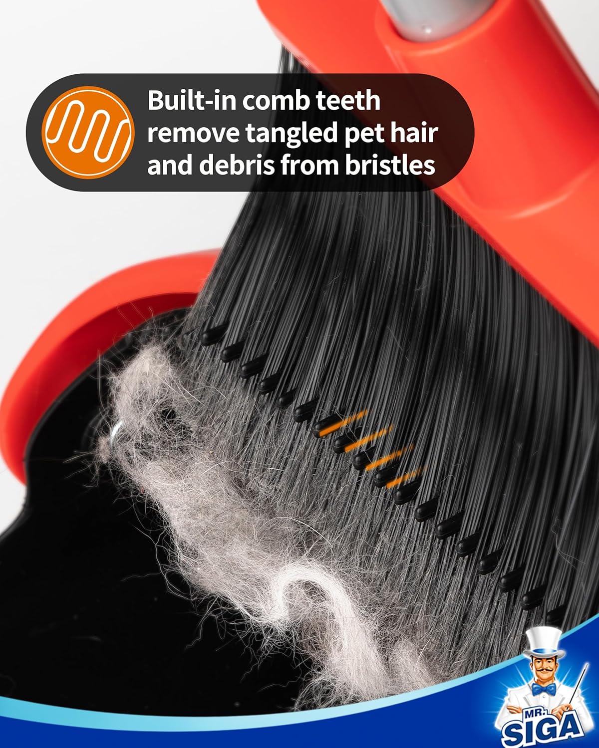 - BUILT-IN COMB TEETH: Equipped with a specially designed comb teeth on the dustpan, this dustpan set effortlessly removes trapped hair and dust from bristles, great for pet owners or anyone dealing with frequent hair shedding