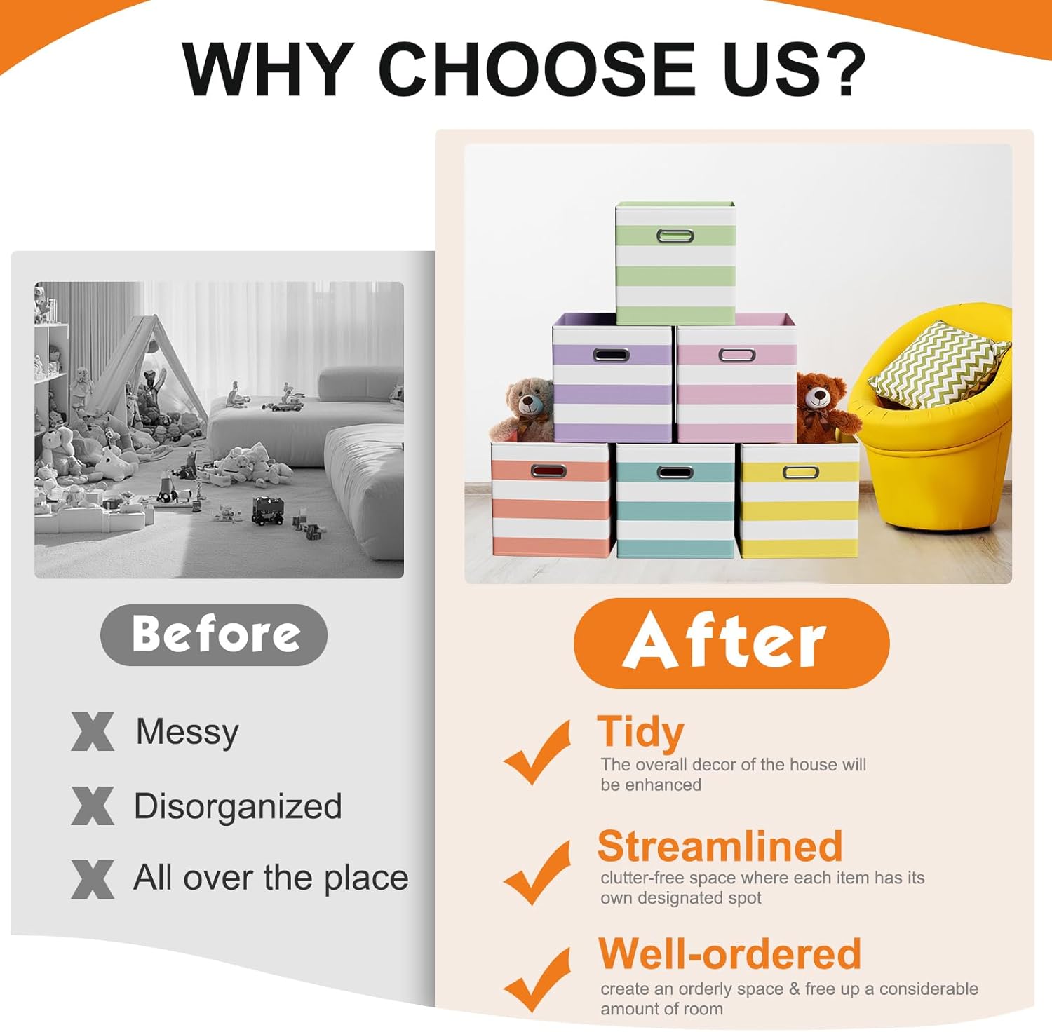 - Wide Range of Uses: whether you're organizing a nursery, playroom, office, or laundry area, these storage cubes are up to the task; They're ideal for stowing away clothes, books, toys, craft supplies, seasonal items, and more; These storage cubes adaptable design fits seamlessly into various spaces, including shelves, closets, bookcases, and desks