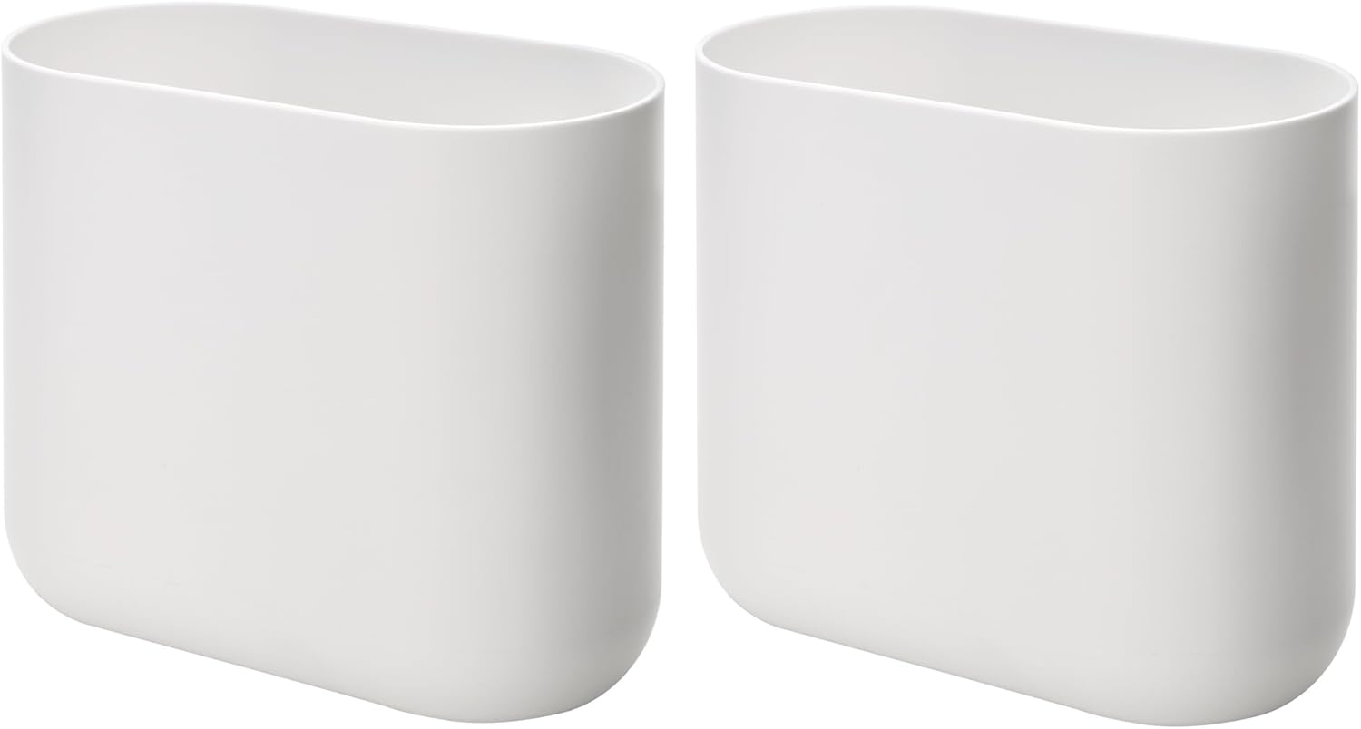 iDesign Small Oval Plastic Bathroom Trash Cans - Ideal for Bathroom, Bedroom, or Office - Set of 2 - White