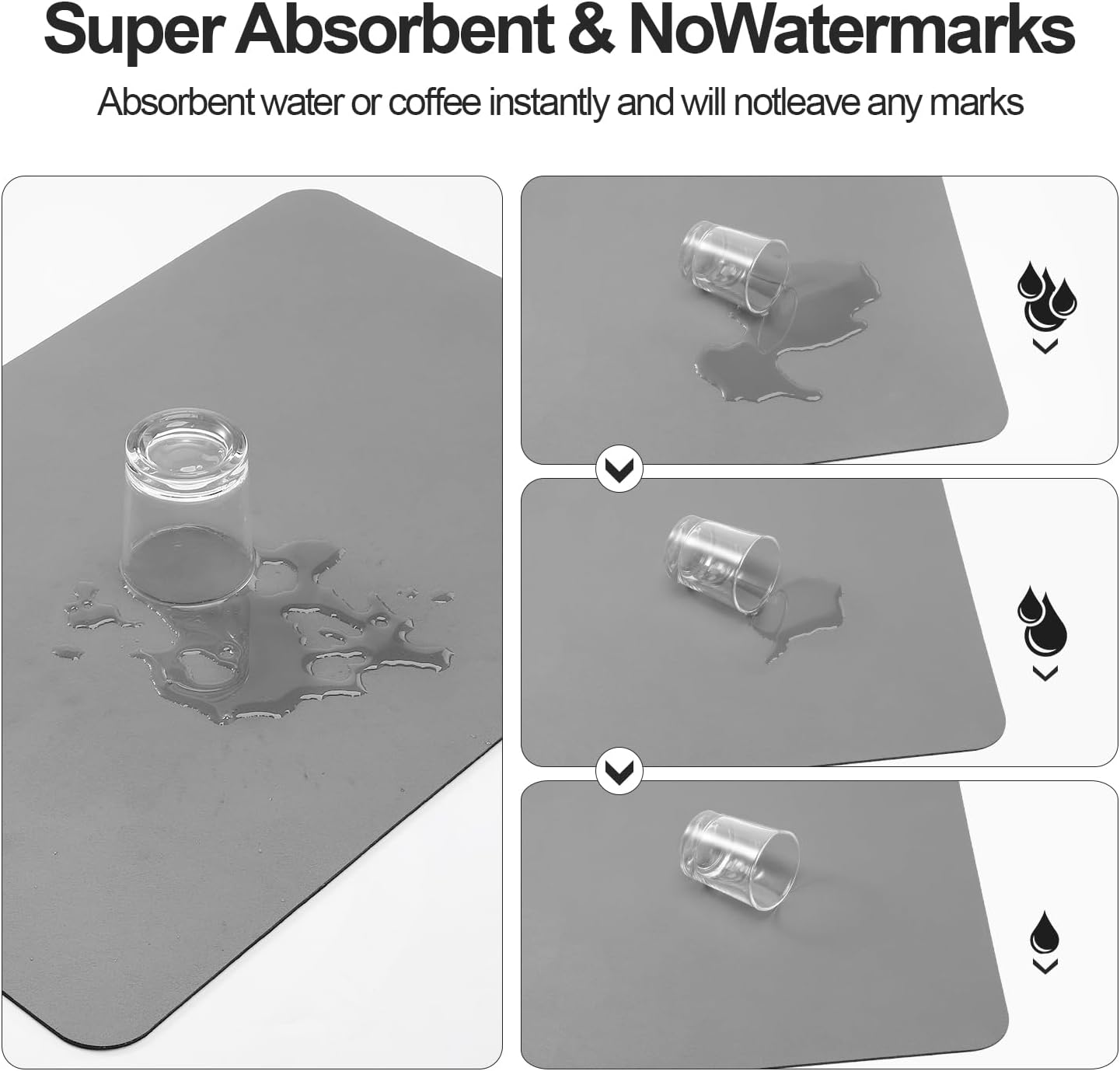 - 【Quick Absorption】 The soft diatomite dish drying mat instantly absorbs any liquid without staining your countertop.