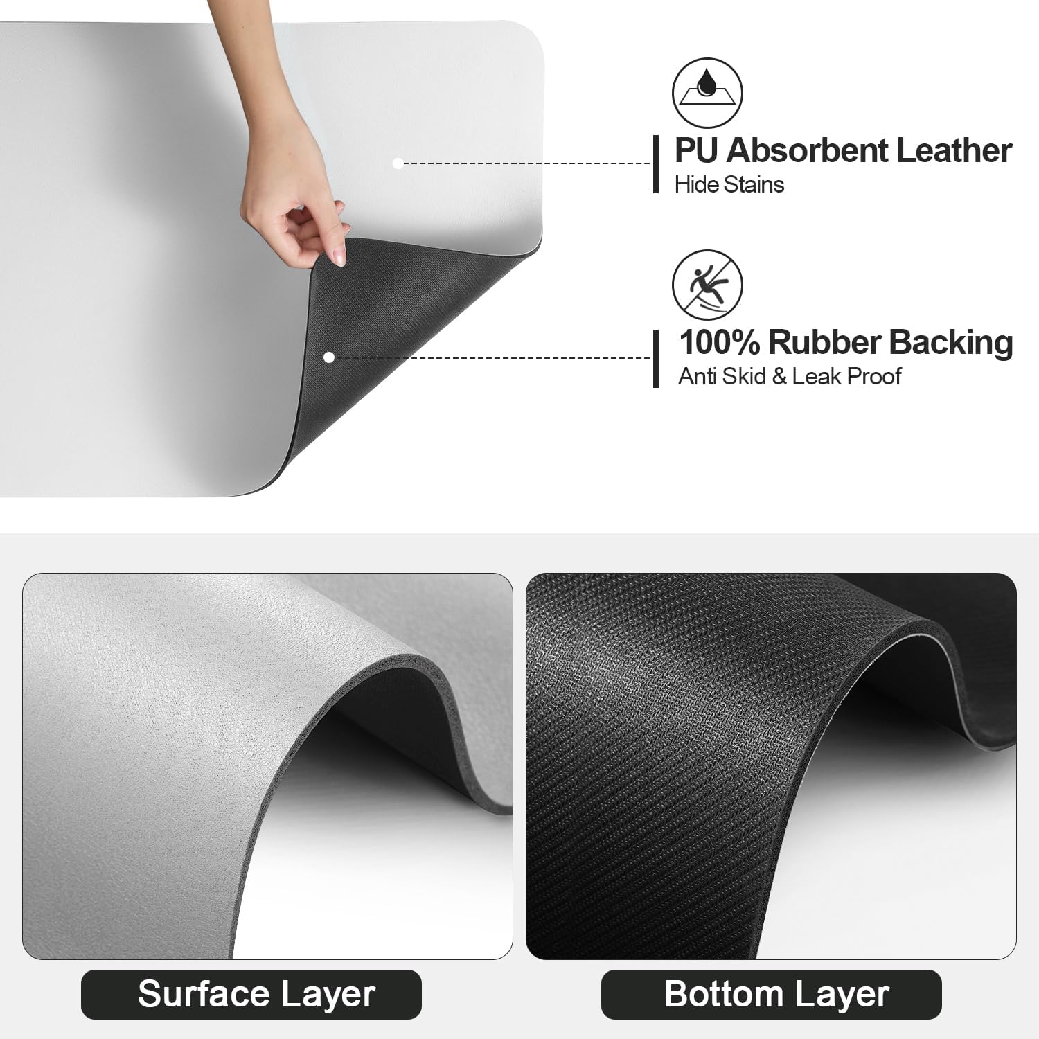 Dish Drying Mat for Kitchen Counter | Coffee Bar Mat for Countertops | Heat Resistant Drainer Mat with Non-slip Rubber Backed | Hide Stain Kitchen Absorbent Draining Mat | Light Grey 16"x18"