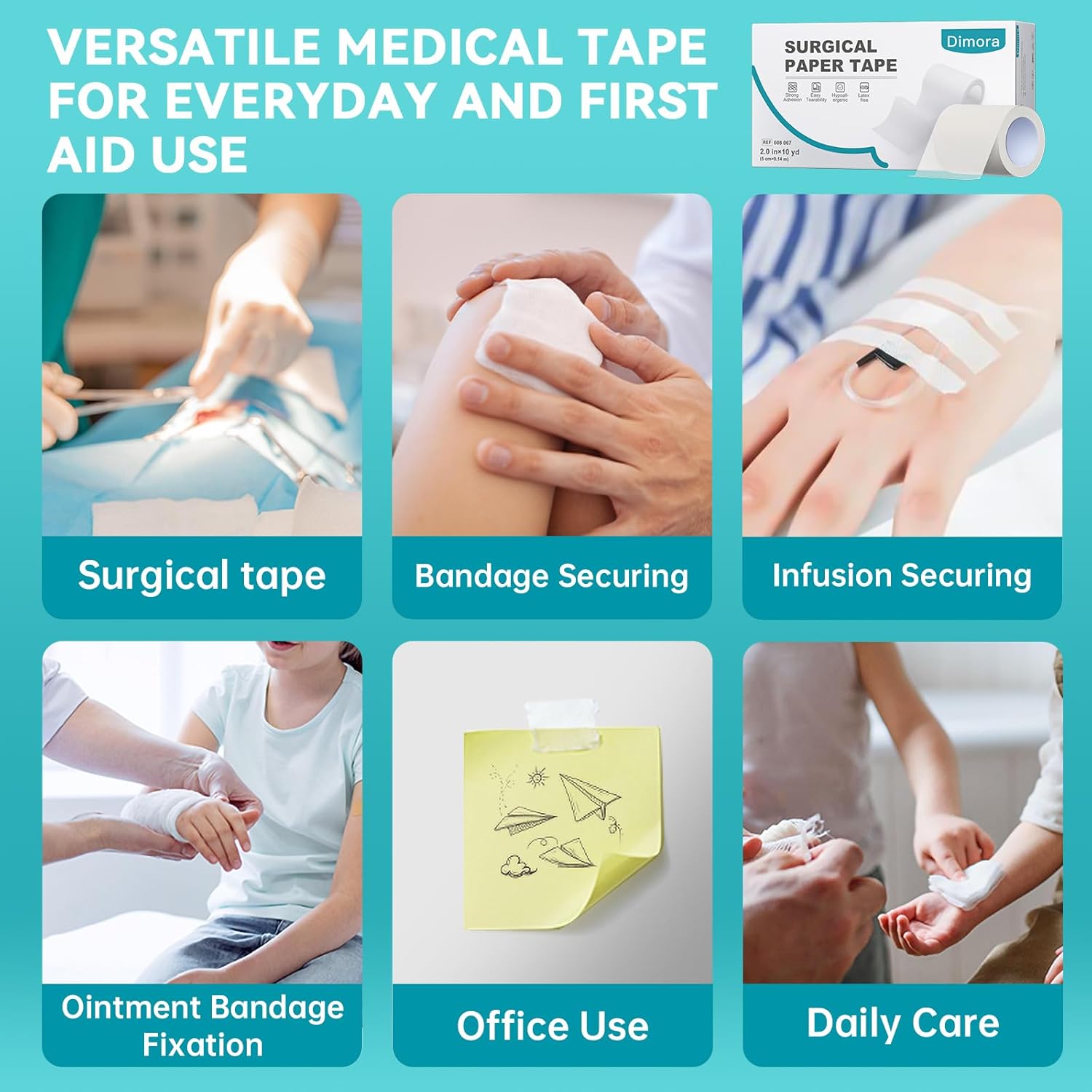 Dimora Soft Paper Surgical Tape 8 Rolls- Hypoallergenic Medical Tape for Sensitive Skin,Breathable First Aid Wound Tape with Pain-Free Removal, Secures Dressing and Medical Devices -2" x 10 Yards