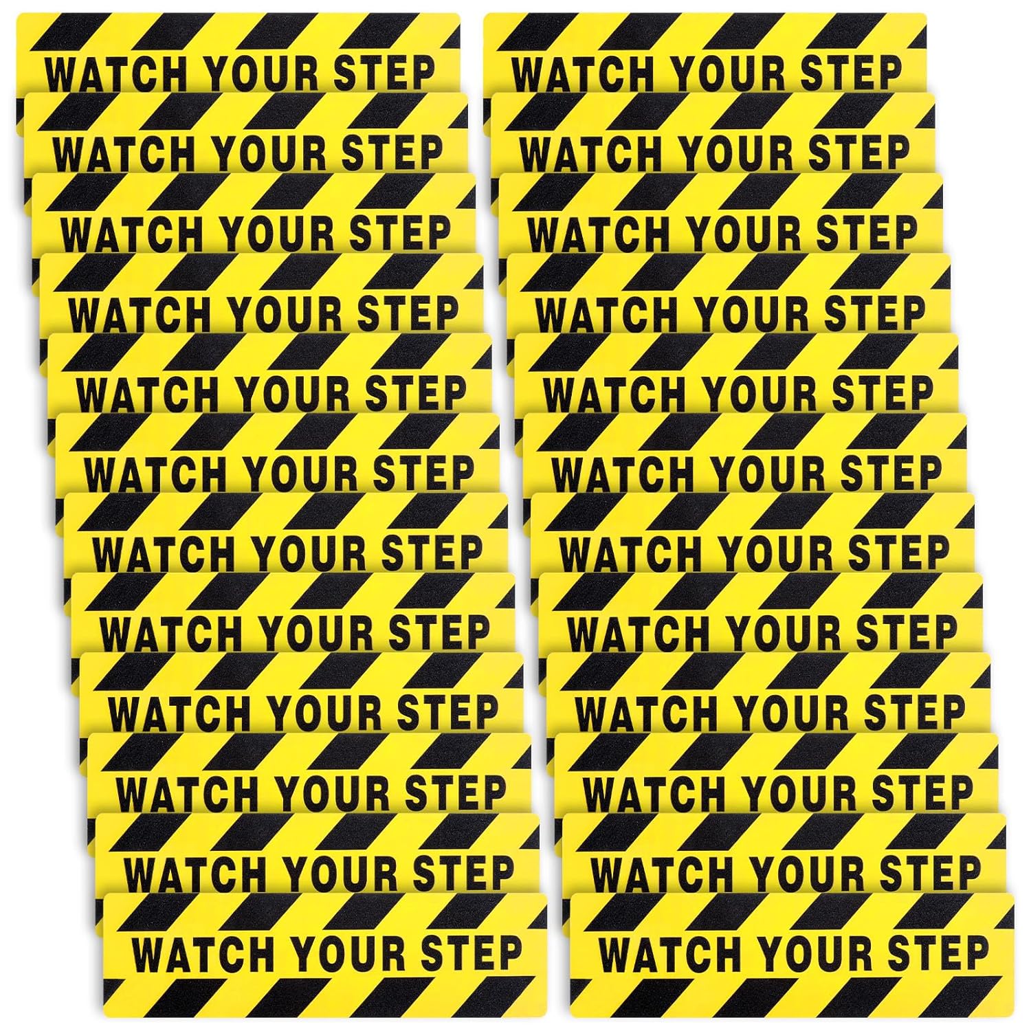 Boao 24 Pieces Watch Your Step Stickers Sign 6 x 24 Inch Caution Watch Your Step Floor Decals Warning Sticker Adhesive Tape Anti Slip Abrasive Tape for Workplace Safety Wet Floor Caution
