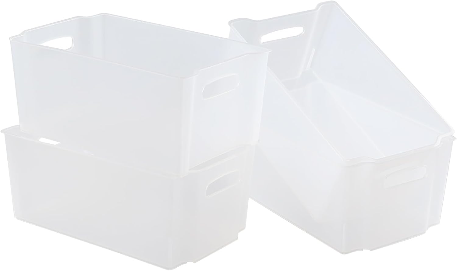 4-Pack Open Storage Organizing Bins, Matte Transparent Plastic Organizer Bins