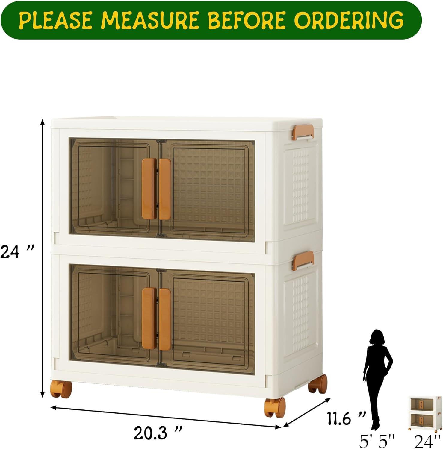 2 Tier Stackable Plastic Storage Bins with 1 Lid 45 QT/Tier, Collapsible Plastic Box Storage Bin with Wheels, Home Containers Boxes Closet Organizers for Living Room, Office, Dorm