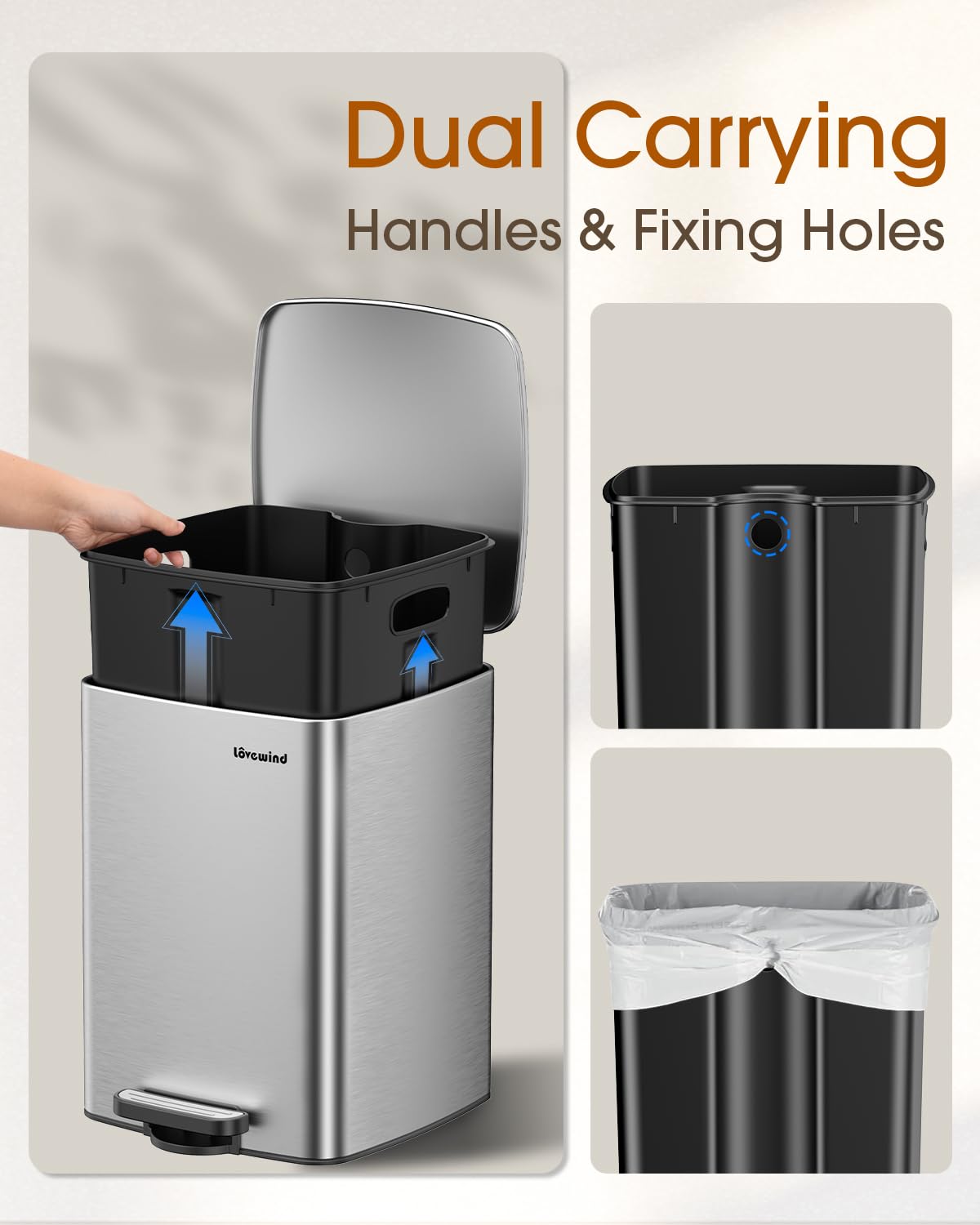 - Easy Cleaning: Removable inner bucket for easy cleaning and maintenance, keeping your kitchen waste bins fresh and odor-free