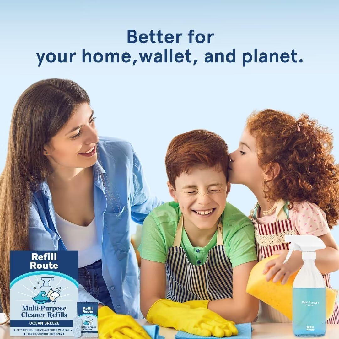 All Purpose Cleaner Refill – 12 Tablets (12 x 16 Fl oz) Multipurpose Cleaners -Can Make 192 Fl oz Bathroom Cleaner Spray Cleaning Tablets Refill - Vegan, No Plastic - Ocean Breeze
