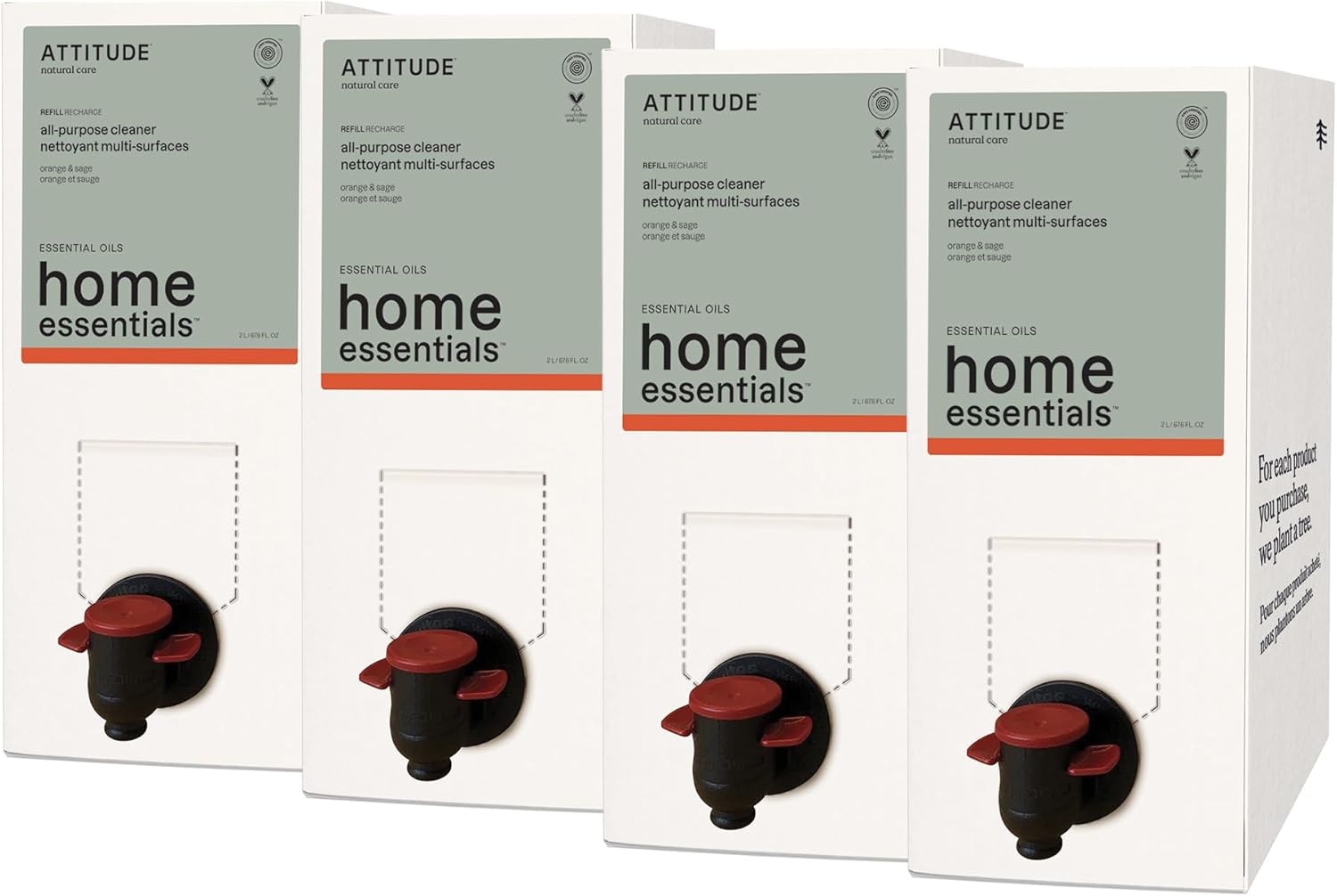ATTITUDE Multi-Purpose Cleaner with Essential Oils, EWG Verified, Plant and Mineral-Based Ingredients, Vegan Household Products, Bulk Refill, Orange and Sage, 67.6 Fl Oz (Pack of 4)