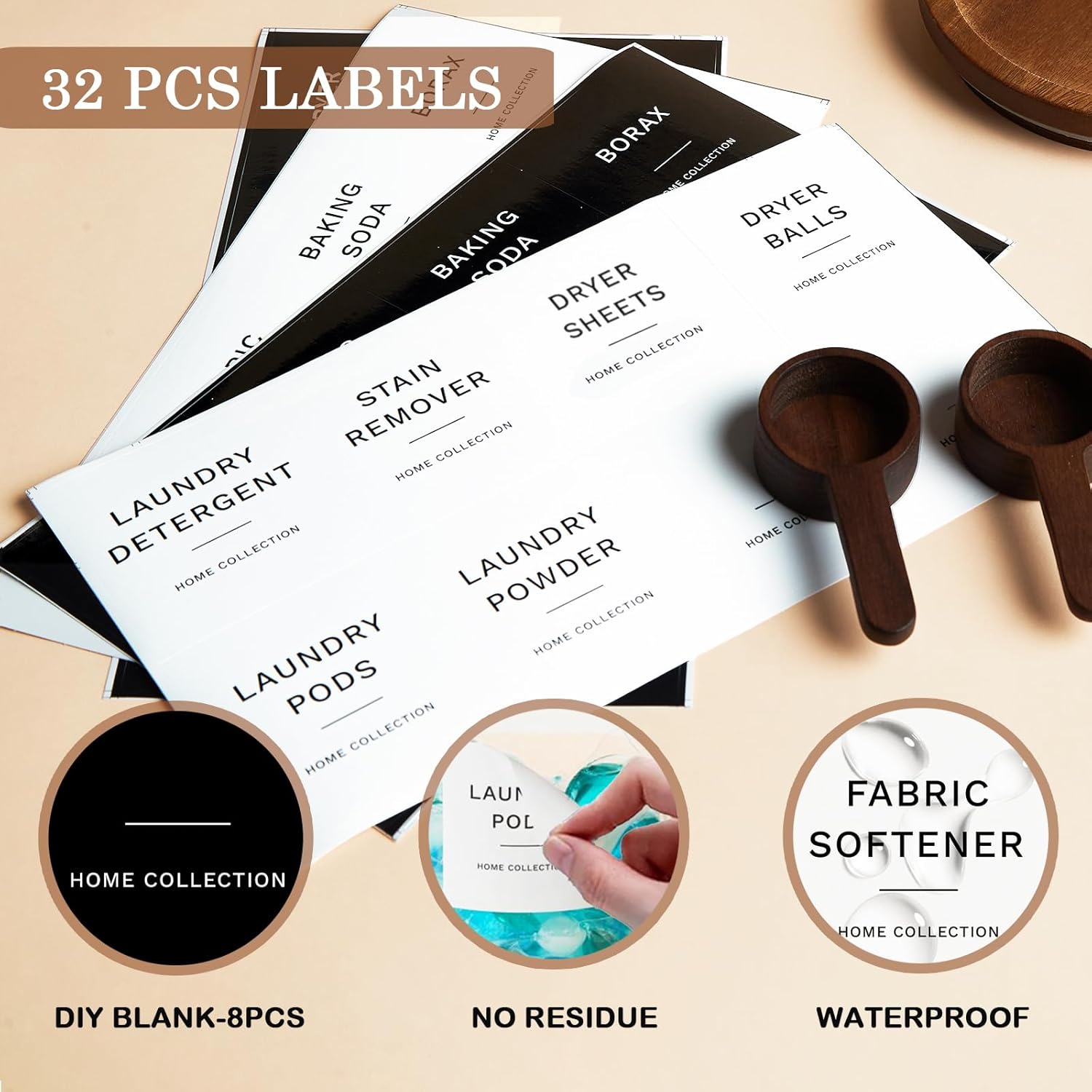 - Convenient design: Each laundry powder detergent container comes with a natural, hand-made and matte acacia wood scoop which ensures precise control of the amount dispensed. Also, the opening of the laundry room organizer is big enough to make it easy to fill and clean. Perfect for everyday laundry needs.