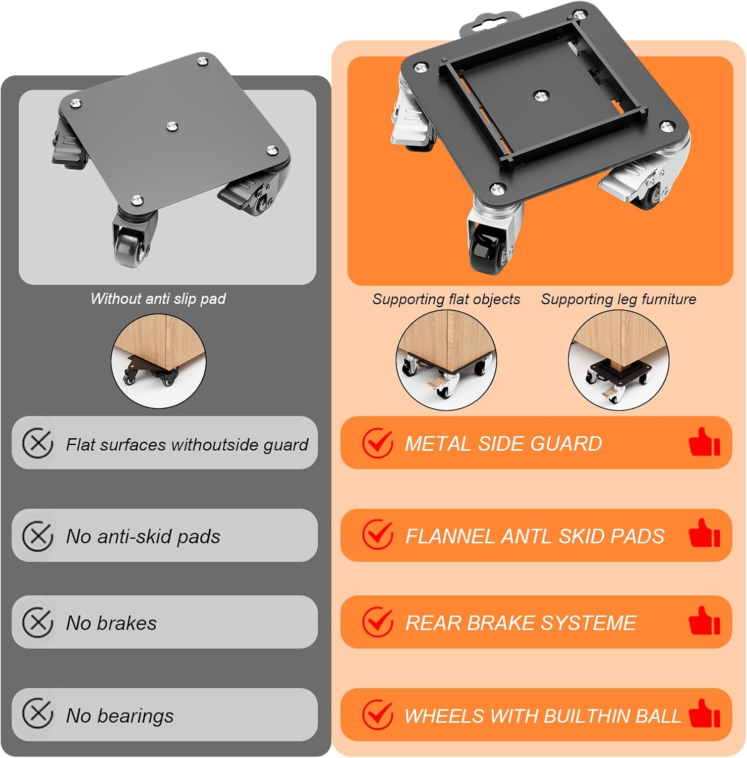 - Experience Effortless Mobility & Secure Positioning with Heavy-Duty 360° Wheels: This furniture dolly features five 1.57-inch double ball-bearing casters that deliver ultra-smooth 360° rotation, maintaining agile movement even when handling heavy loads. The innovative tail brake system provides dual locking capabilities - simultaneously securing forward/reverse motion and full-wheel rotation for precise control once your items are perfectly positioned.