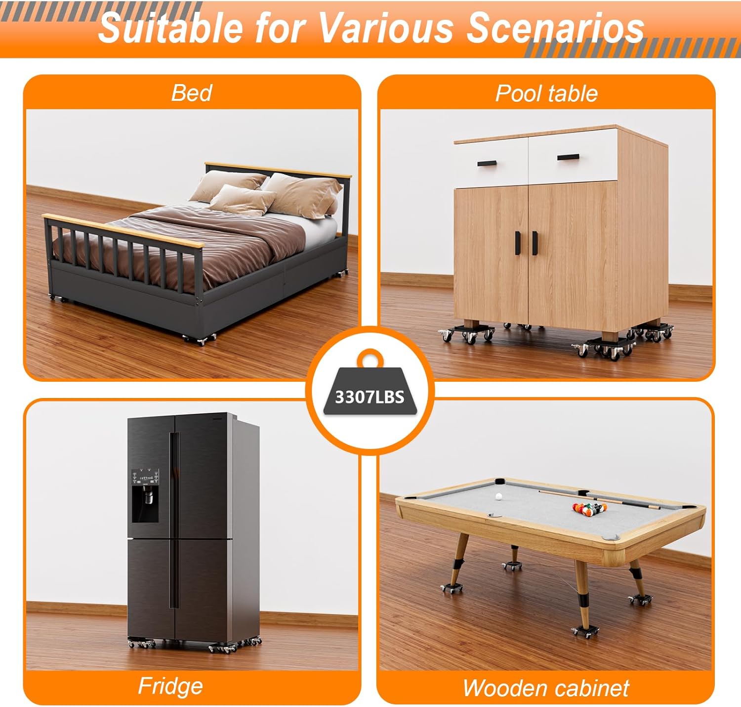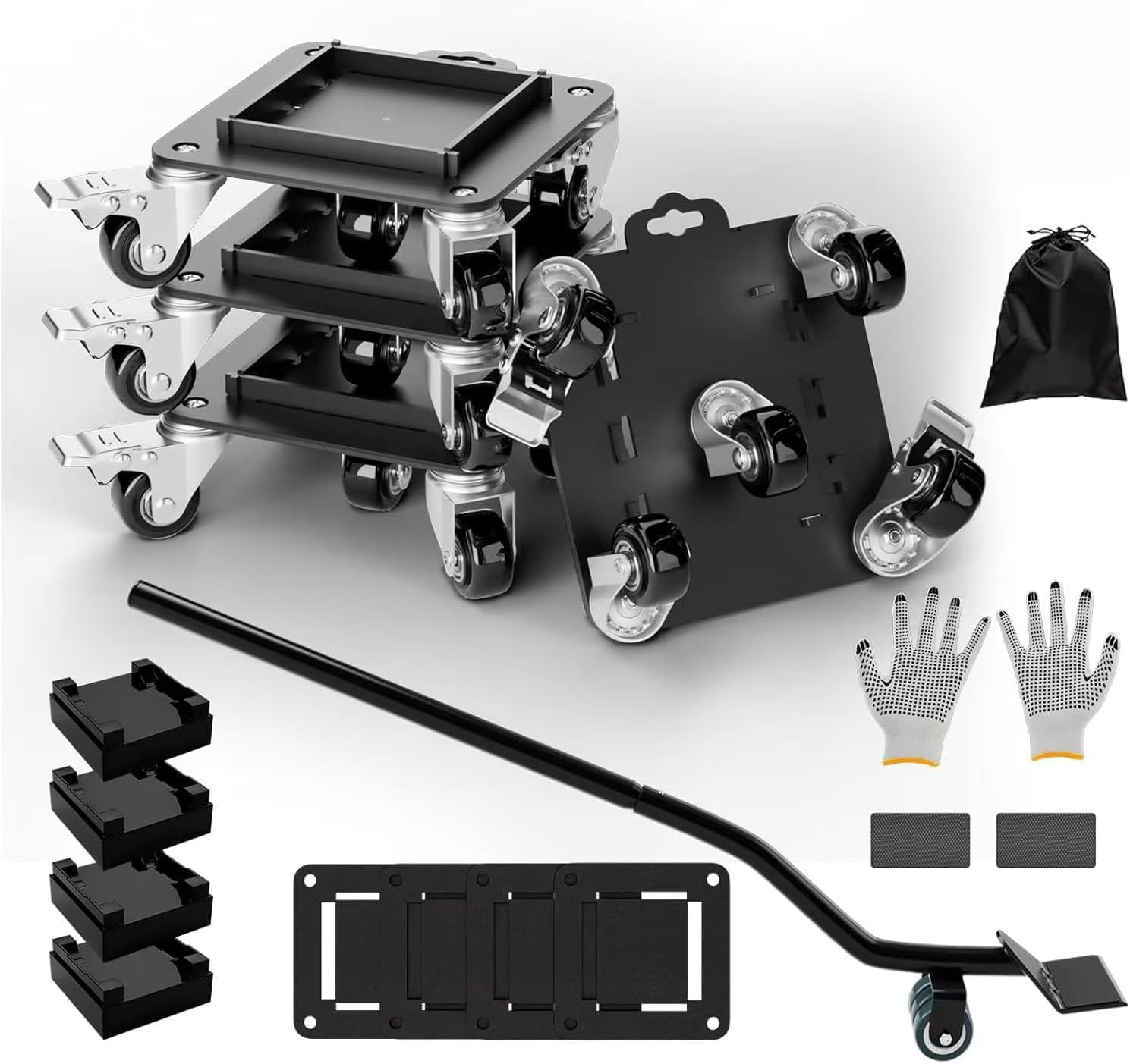 - High Load Capacity: Constructed from durable 3mm carbon steel, this furniture mover supports up to 3307 lbs static load and 3000 lbs dynamic load. The extended crowbar simplifies lifting, and the 4 height-raising pads make it easy to move heavy furniture and appliances with ease and durability.