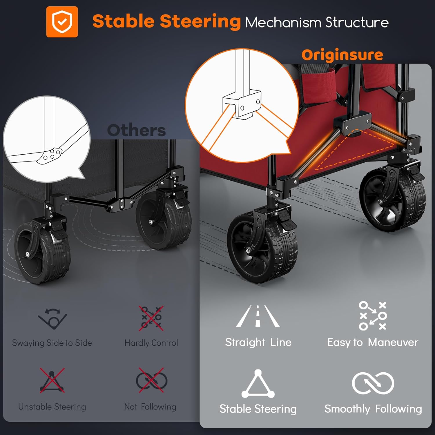 - ใ๐ณ.๐ฒ๐ต ๐ฐ๐ ๐ณ๐ ๐๐ฎ๐ฟ๐ด๐ฒ ๐๐ฎ๐ฝ๐ฎ๐ฐ๐ถ๐๐ ๐๐ถ๐๐ต ๐ฆ๐บ๐ฎ๐น๐น๐ฒ๐ฟ ๐๐ผ๐น๐ฑ๐ฒ๐ฑ ๐ฆ๐ถ๐๐ฒ ๐ฃ๐ผ๐ฟ๐๐ฎ๐ฏ๐น๐ฒ ๐๐ผ๐น๐น๐ฎ๐ฝ๐๐ถ๐ฏ๐น๐ฒ ๐๐ฒ๐ฎ๐ฐ๐ต ๐ช๐ฎ๐ด๐ผ๐ปใOriginsure foldable wagon cart, 37.40 "L x 24.21 "W x24.00 "H large unfolding size, 7.69 cu ft massive storage space, double the capacity of similar wagons. Adopting an innovative folding design that maintains its height, the Capacity reduces to 1.36 cu ft when folded, only 1/3 of other carts. Compact and space-saving, it can be perfectly stored in the car trunk and room corners.
