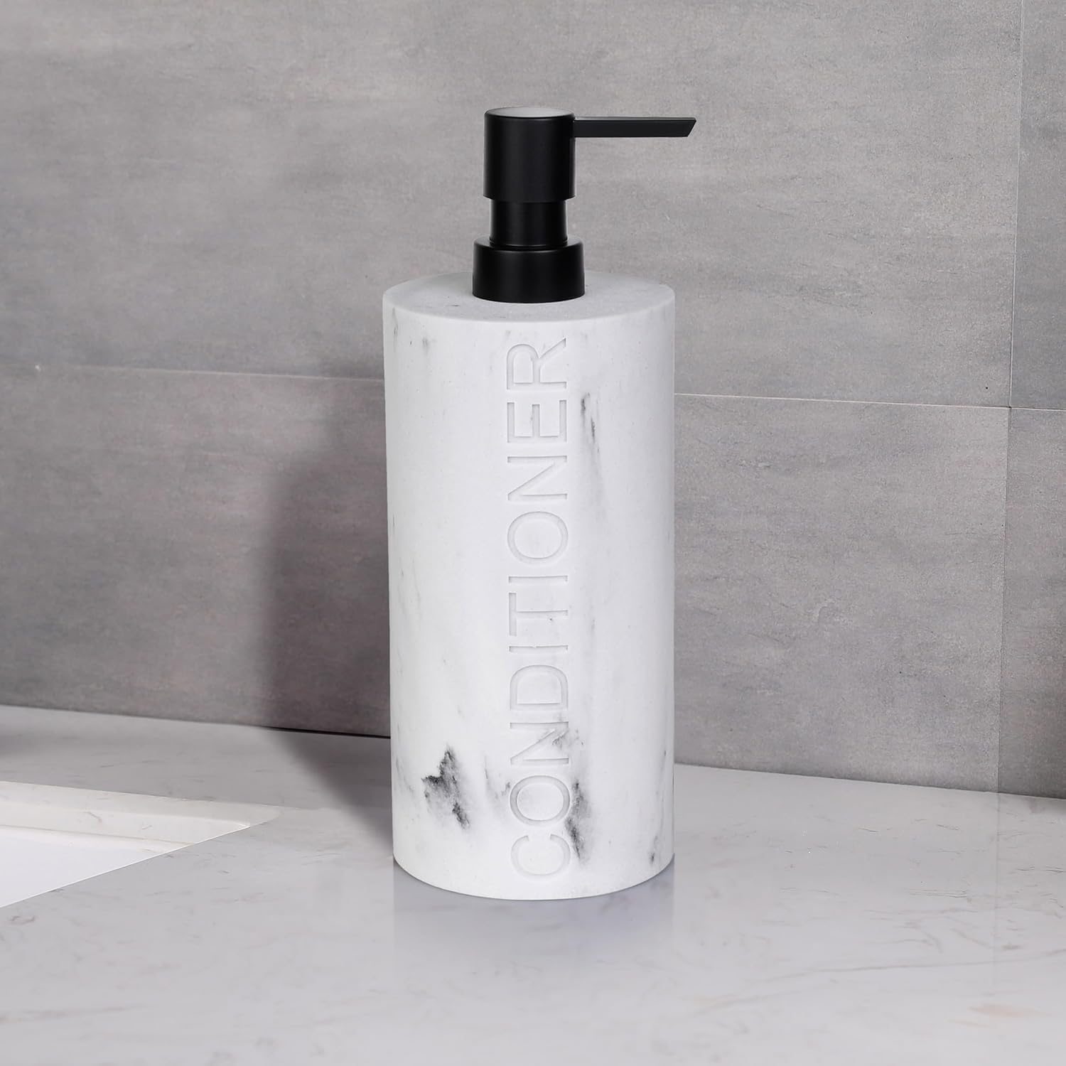 - Sophisticated Embossed Detail: The engraved "CONDITIONER" text ensures easy identification, while the polished marble-like finish adds a touch of opulence to any setting. A perfect blend of beauty and practicality.