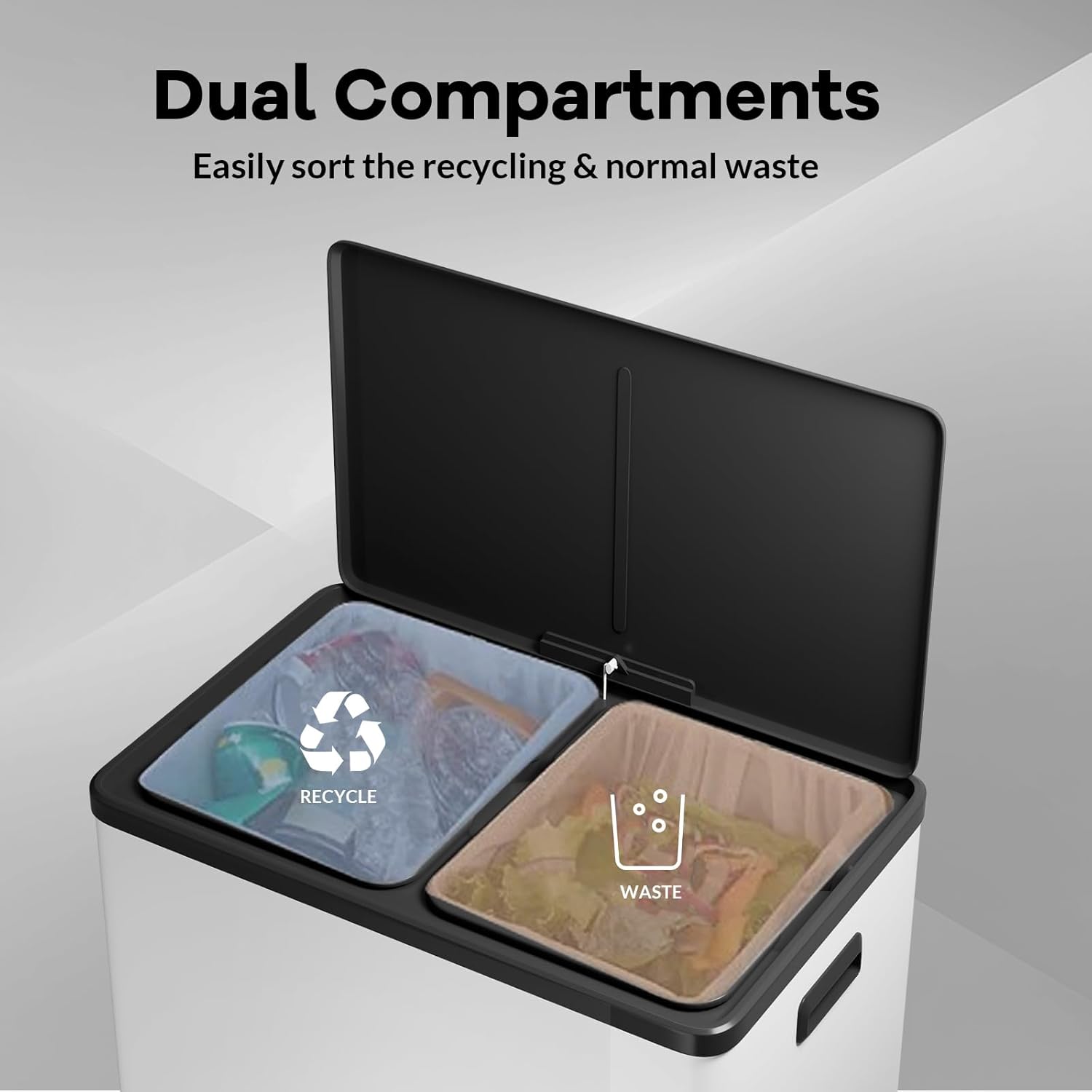 - --Simplify Recycling: This 60L (16 gallon) step trash can includes two removable wastebaskets for easy sorting of recyclables and regular trash. Perfect for home and office, it simplifies waste management and promotes eco-friendly practices