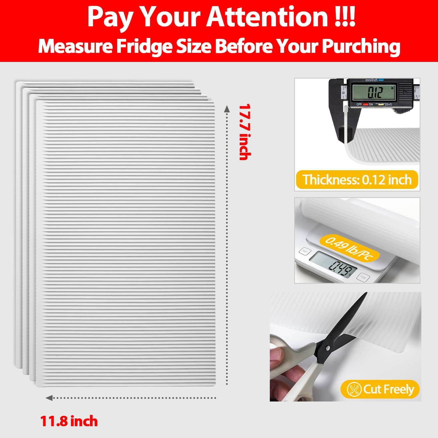 - Safety Material: Made of 100% food-grade silicone, BPA-free, non-toxic, no fading, highlights is that we have added the anti-slip Stripped texture to strengthen friction, to protect it against annoying spills, drips and food stuck on your fridge shelves, saving you the time and effort you spend cleaning your fridge.