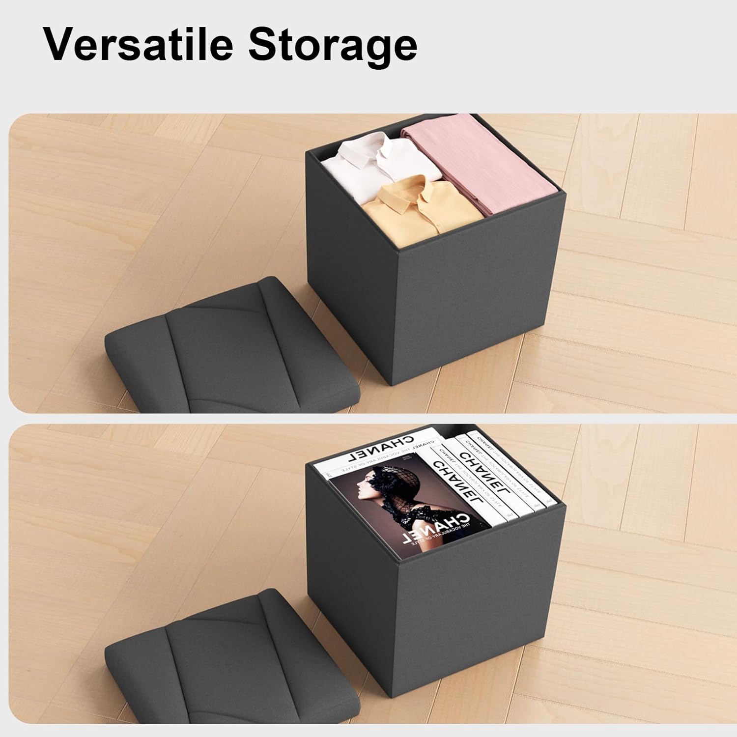 Folding Storage Ottoman Bench, 15 Inches End of Bed Bench, Folding Ottoman Storage for Bedroom, Entryway and Living Room, 15"x15"x15",Dark Gray