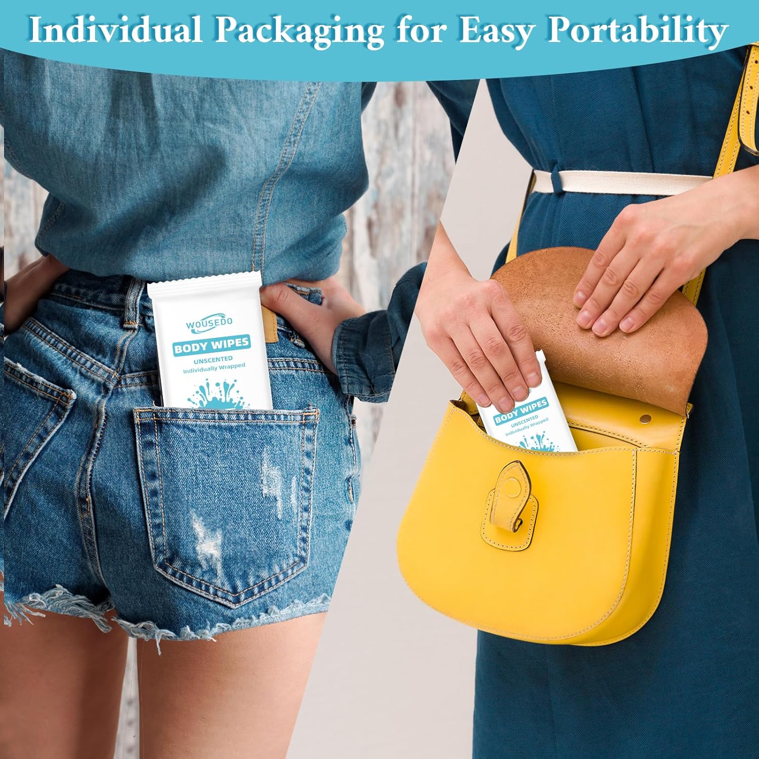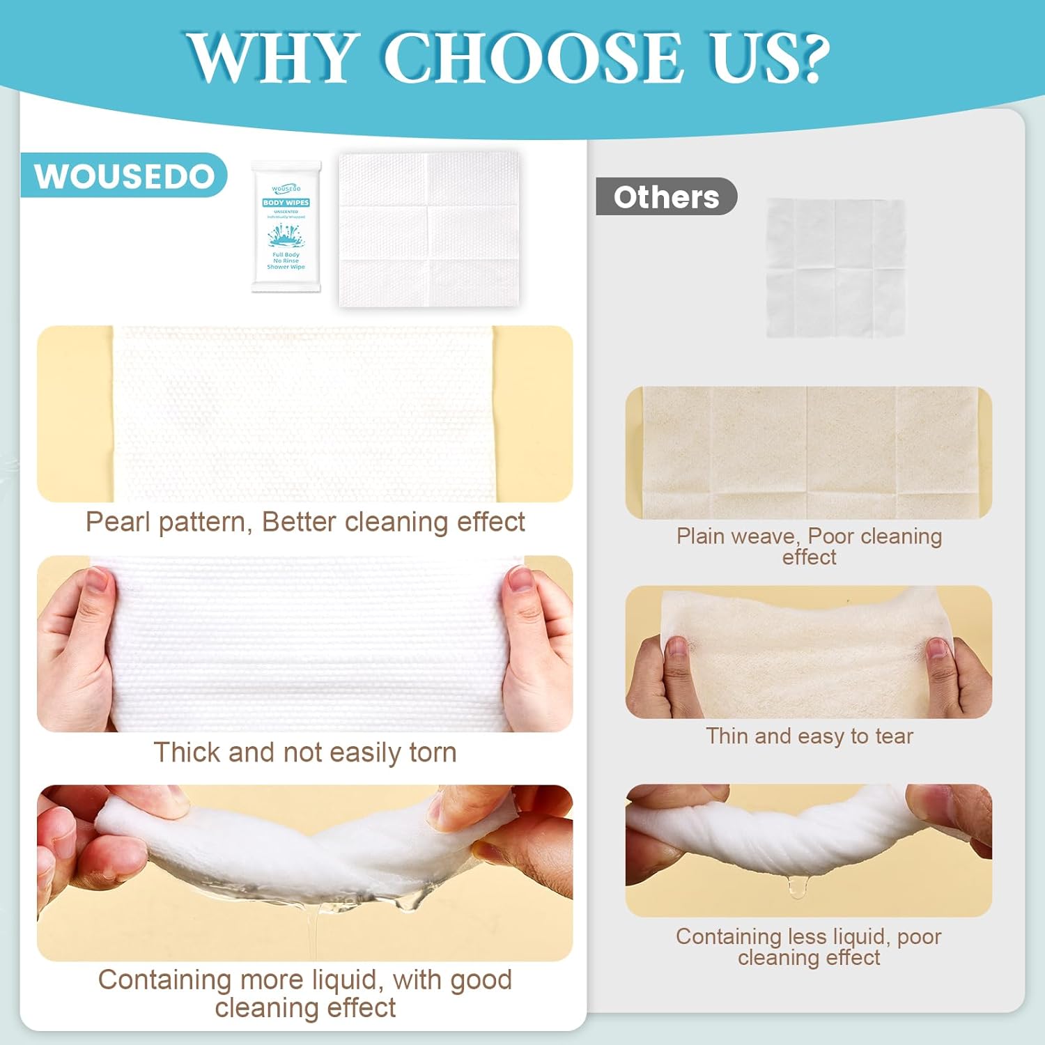 - Mild Formula: WOUSEDO body wipes are made of high-quality non-woven fabric and RO pure water,PH balanced and rich in aloe vera leaf juice and vitamin E, they do not contain alcohol or any chemicals, making them more skin friendly, effectively cleansing the body, and not causing skin irritation.