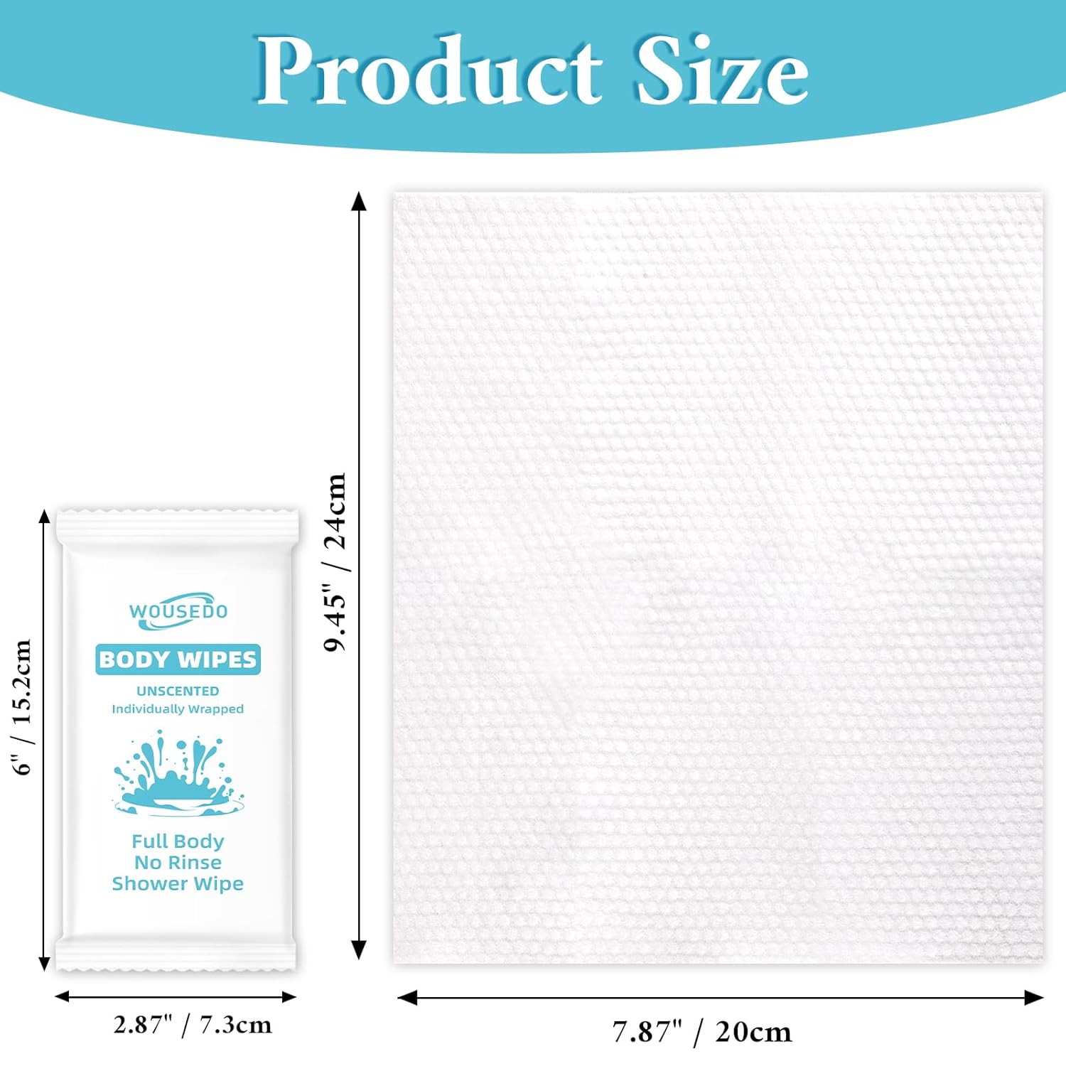 300 Pcs Ultra Thick Soft Large Body Wipes Individually Wrapped(7.87" x 9.45"),Shower Wipes for Adults Bathing No Rinse,Personal Cleansing Wipes for Travel Gym,Bulk Deodorant for Homeless(White)