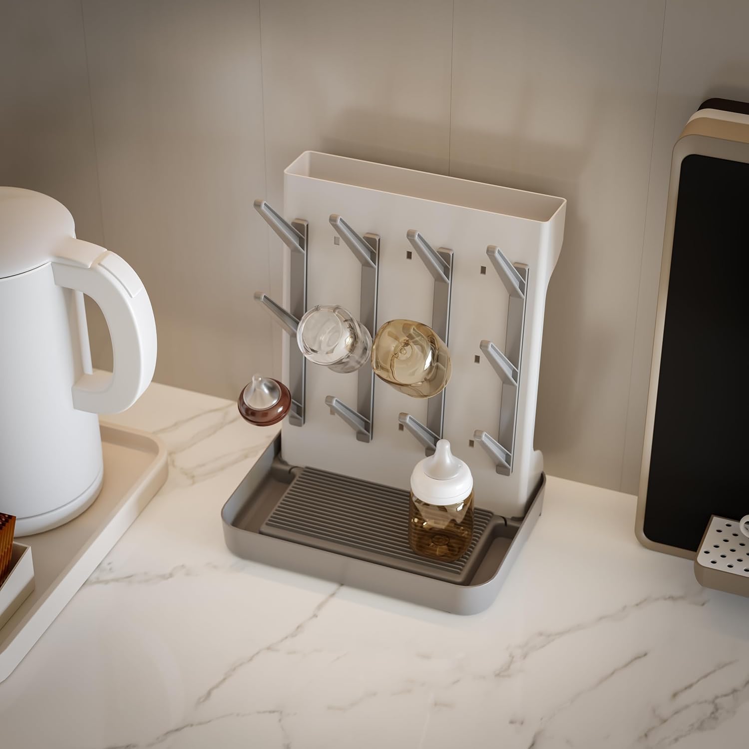 IEEK Baby Bottle Drying Rack,Large Vertical Drying Tower Bottle Rack Holder Space Saving Standing Drying Rack for Countertop-Holds 12 Baby Bottles and Cup,Etachable Travel Bottle Rack,Grey and White