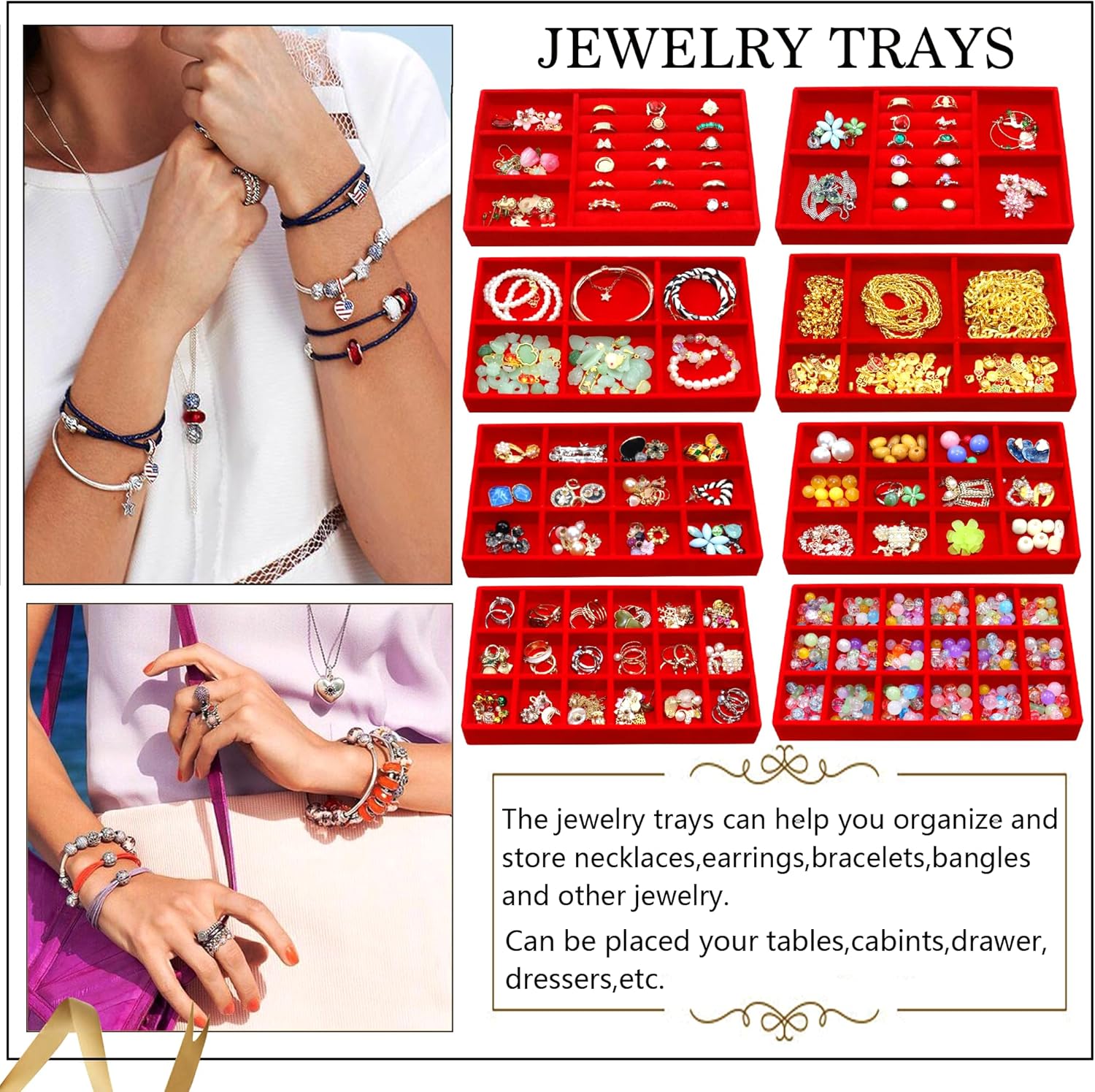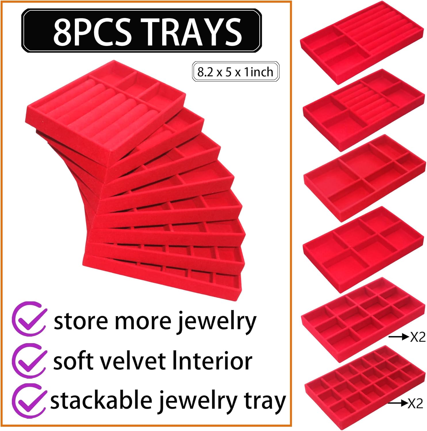 - Perfect Size for Any Drawer or Table: Set of 8 jewelry trays ( Each 8.2 " x 5 " x 1"). Convenient and roomy enough for you to store your different jewelry, like earrings,bracelets, necklaces, rings, pins, brooches,watches and so on