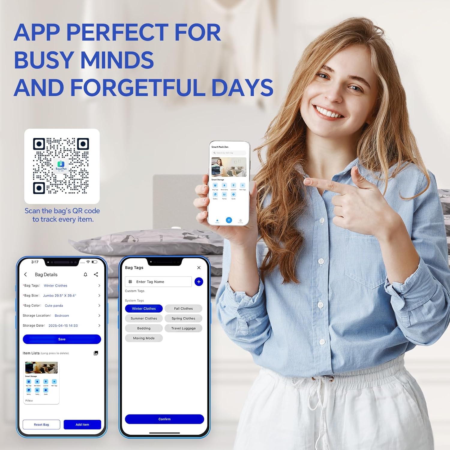 Heavy Duty Space Saver Vacuum Storage Bags with Pump & Smart Storage App, Reusable Oxford Fabric Vacuum Seal Bags for Bedding, Clothing, Blankets, Comforters & Travel Luggage(12 Pack)