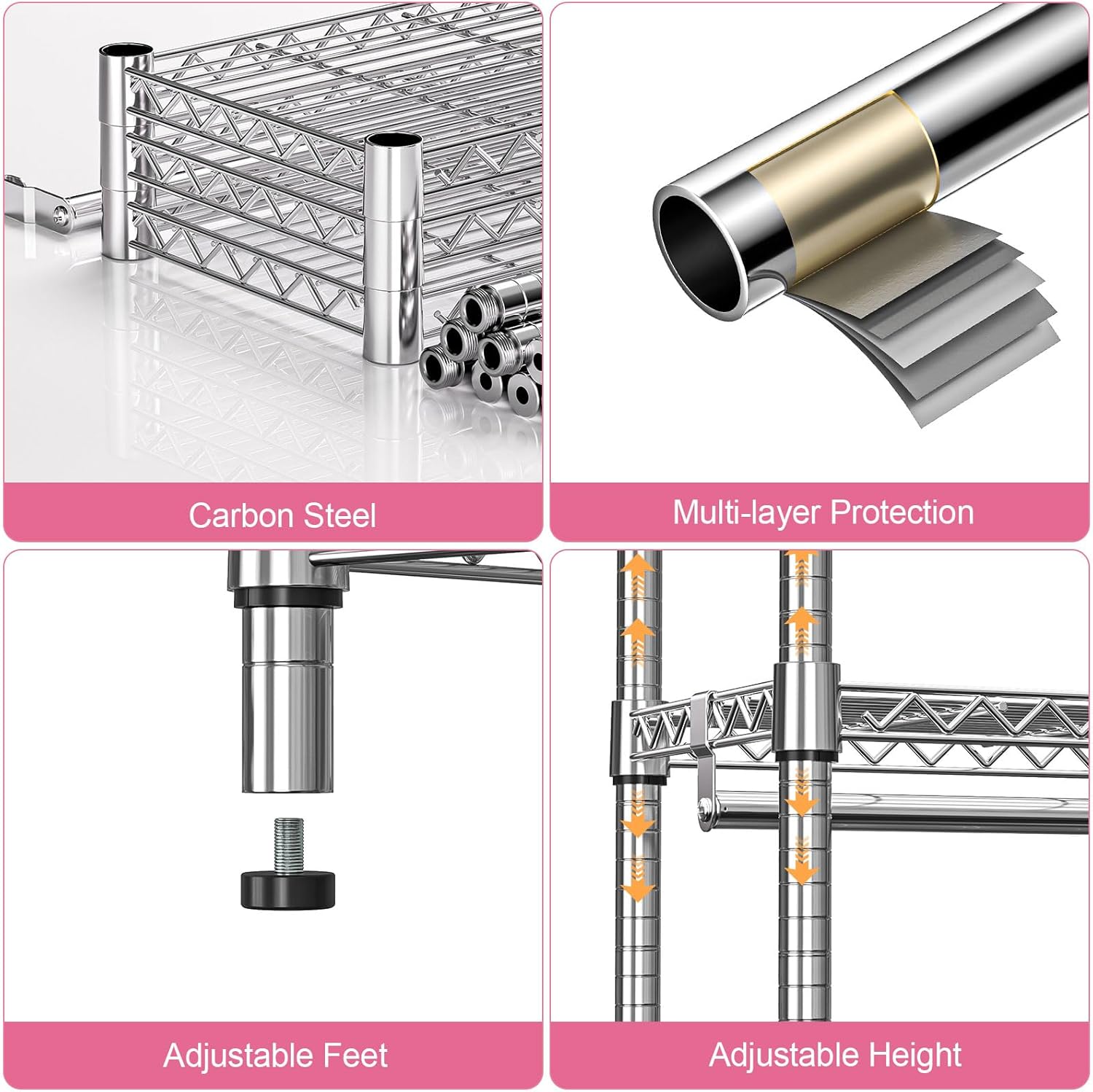 - High Weight Capacity : Built to handle heavy loads, this rack supports up to 1050 lbs when stationary and approximately 300-350 lbs when on wheels, making it ideal for both lightweight and bulky storage