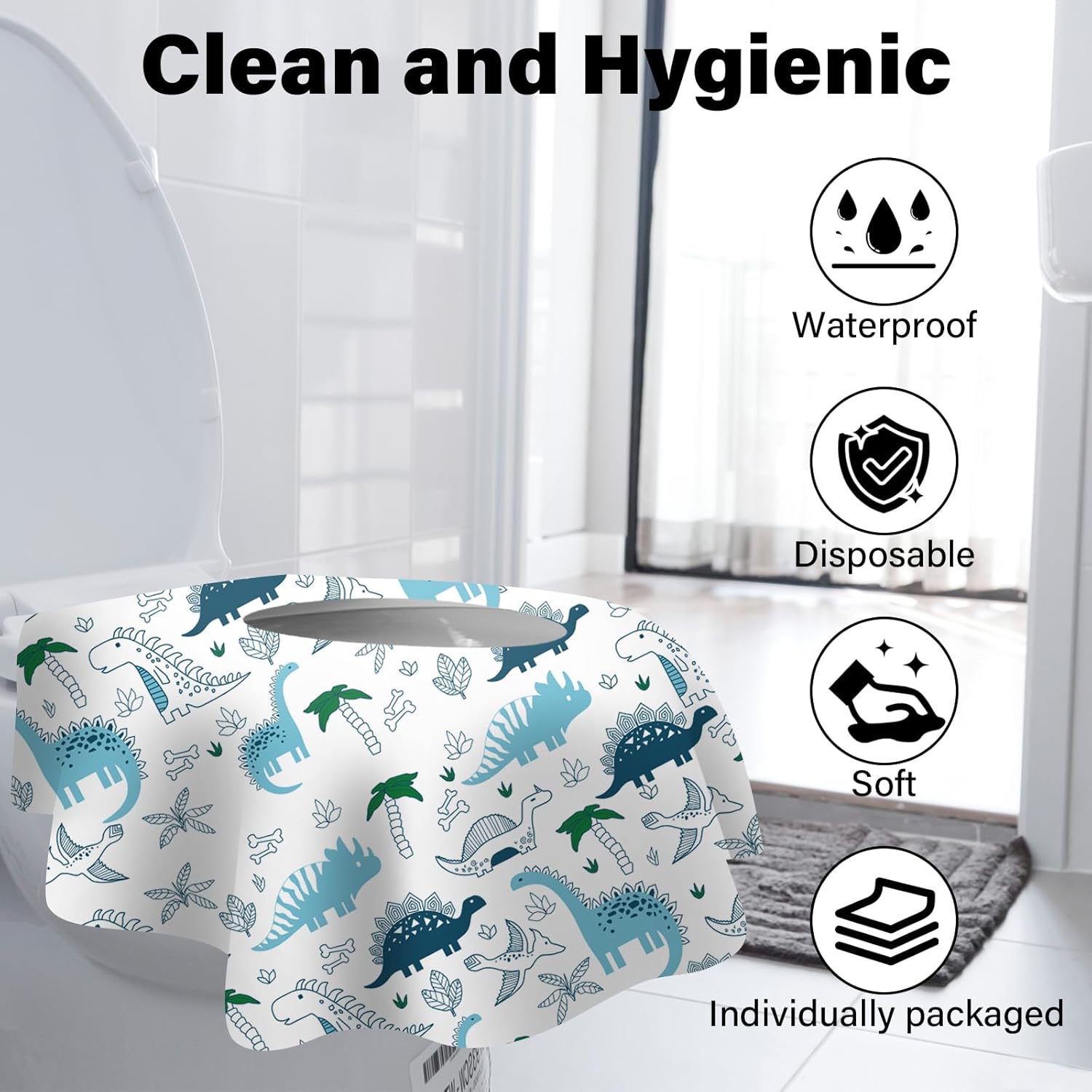 60 Pack Toilet Seat Covers Disposable, Extra Large Waterproof Toilet Cover for Toddlers & Adults, Individually Wrapped Travel Essential Portable Potty Training in Public Restrooms, Trip - Dinosaur