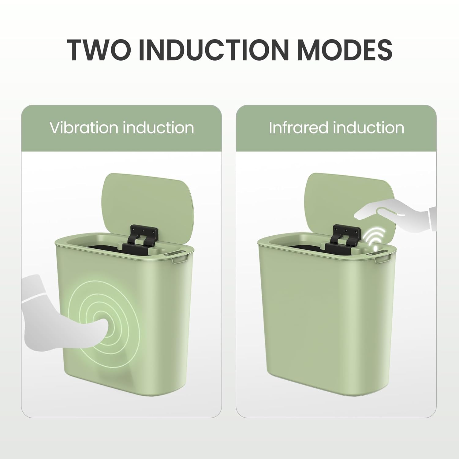 Cesun Automatic Motion Sensor Bathroom Trash Can with Lid, 2.6 Gallon Touchless Trash Bin, Smart Plastic Slim Garbage Can Small Green Wastebasket for Toilet, Office, rv, Bedroom, Living Room