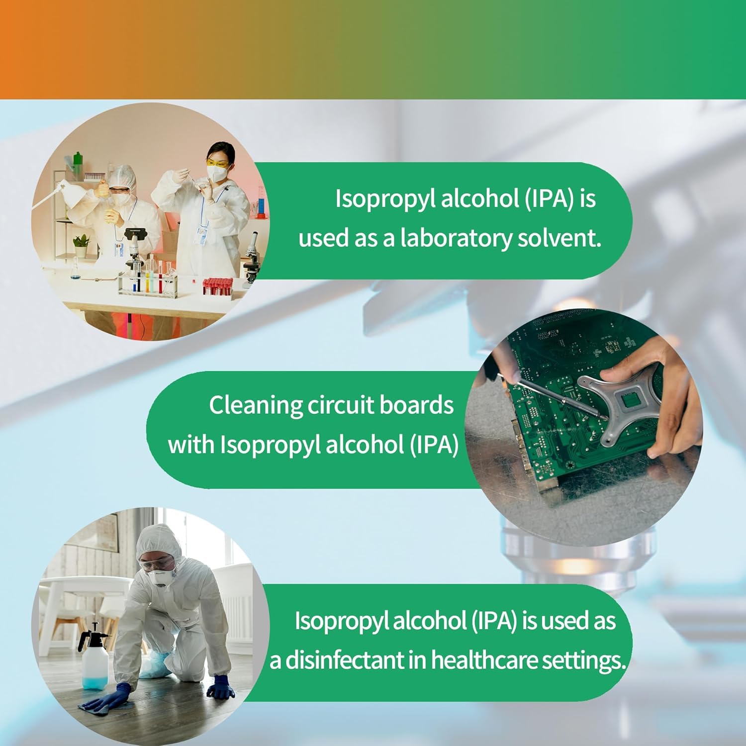 - 【Industrial Strength】This concentrated solution, available as 99 percent isopropyl alcohol, is suitable for demanding professional and commercial uses.