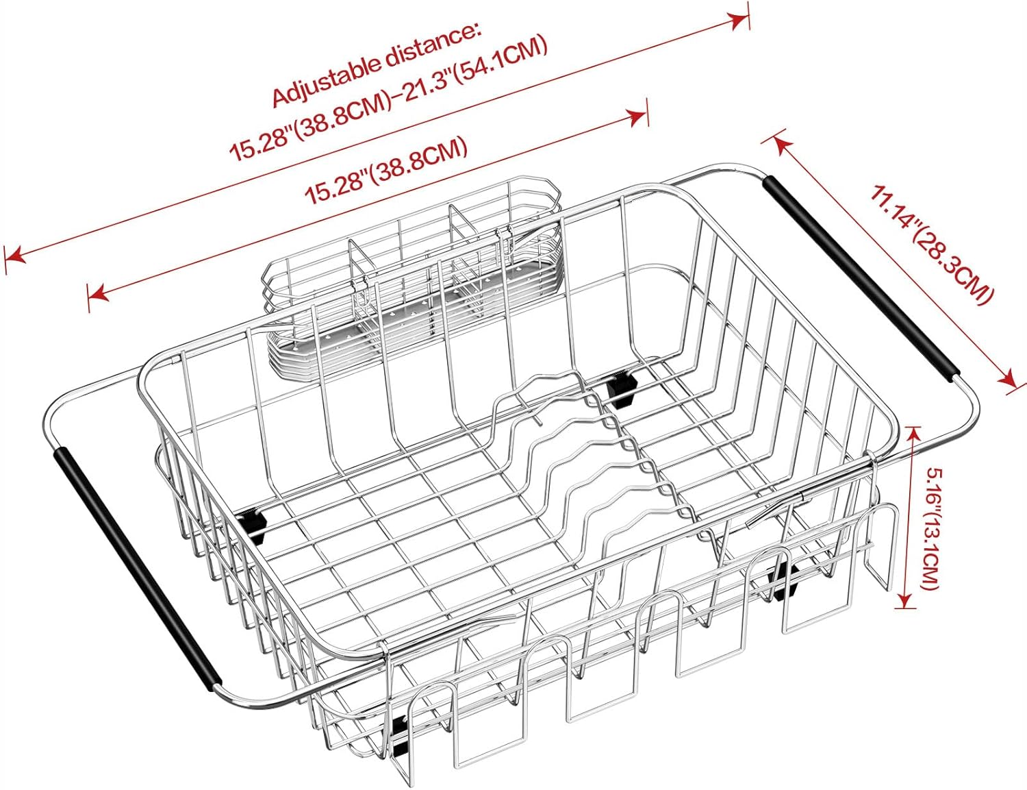 - 【Non-Slip Expandable Arms】The arms of the drainer rack are adjustable from 15.28" to 21.3", which makes it suitable for most sizes of sinks, and very easy to handle