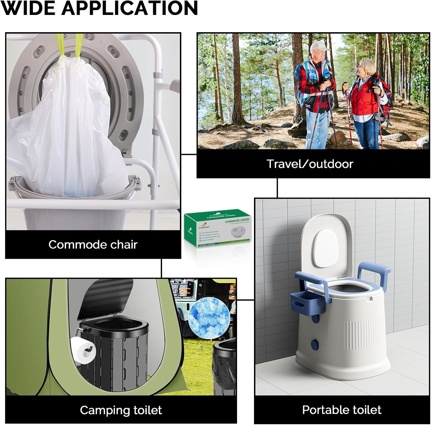 - Universal Fits: Commode bags are measured in 20.8*14.9in(53*38cm), these portable toilet liners are universal fit and easily fit a standard portable commode, adult potty chairs, portable toilet for adults, bedside commodes for seniors, or portable toilet for camping, you don't have to worry about whether it will fit your bucket